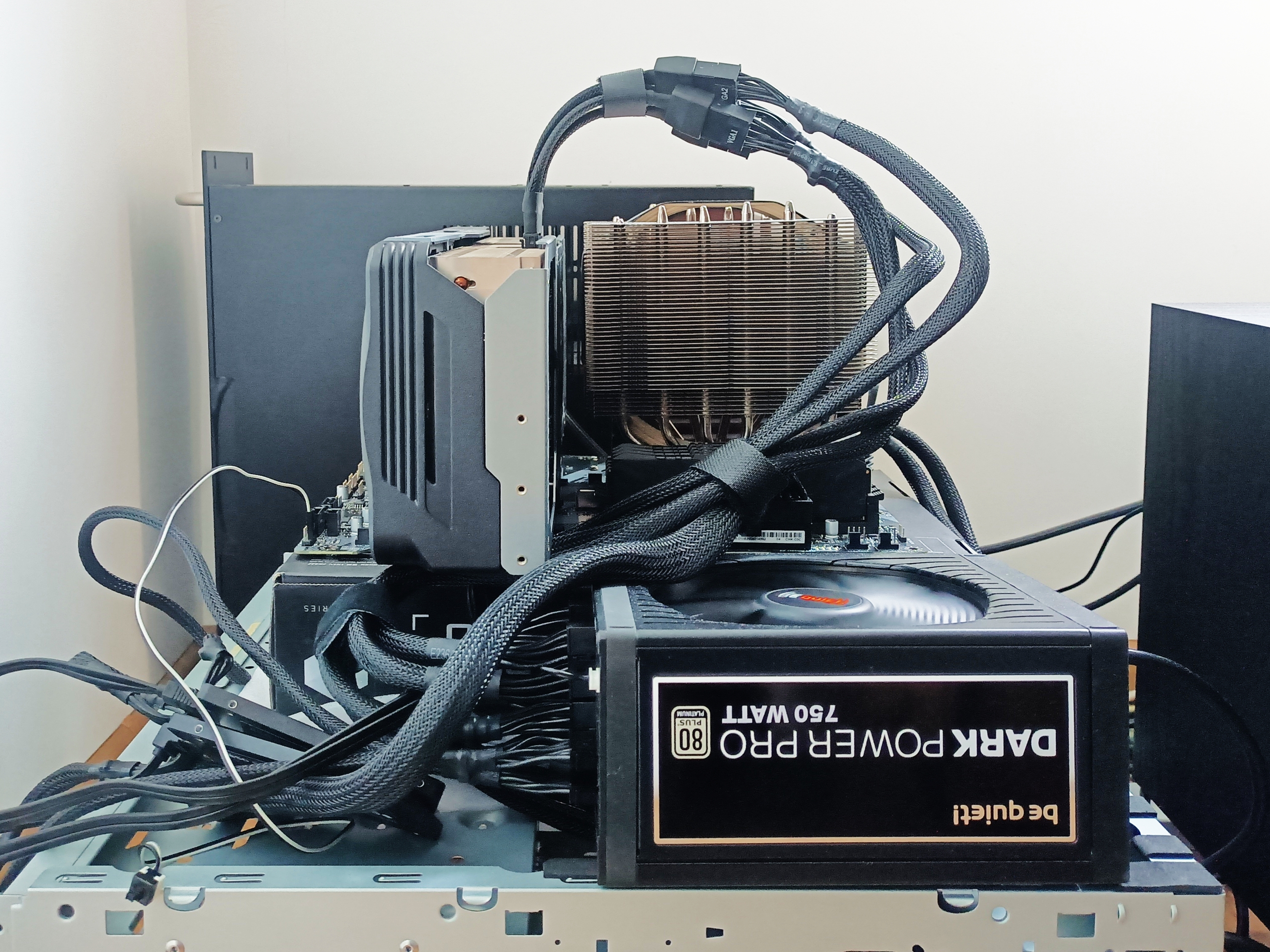 С корпусами ещё проблема что они усиливают шумы вентиляторов, особенно БП и видеокарты. Гула становится больше, или он появляется будучи неслышимым на открытом стенде. Короче, корпуса это гемор, да и без корпусов тоже гемор, особенно если нужно перевезти сборку на другой объект.