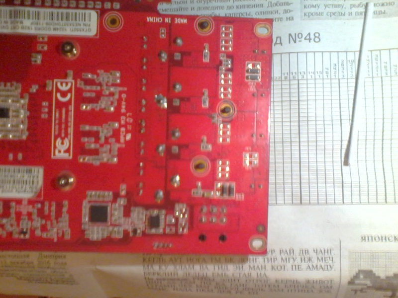 xdarkness По температуре не скажу , я её купил и сразу заменил термопасту , но по предыдущим видеокартам на пять градусов падала с по сравнению с обычной (Ал си 3 и т.д.). В простое 33 - 35 градусов , в 3 де марках до 70 градусов (где то в районе 60 ), FurMark нагрел до 78 . Вентилятор почти всегда работает 1290об - 30% . Охлаждение родное. На фото выложил как выпаивал , то есть один контакт - два паяльника , если один паяльник , то он прогревает половину контакта. Выложил другого исполнения плату Palit , то же не допаяны три кондёра .