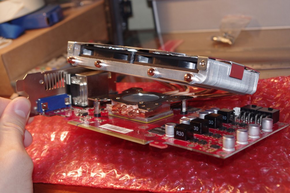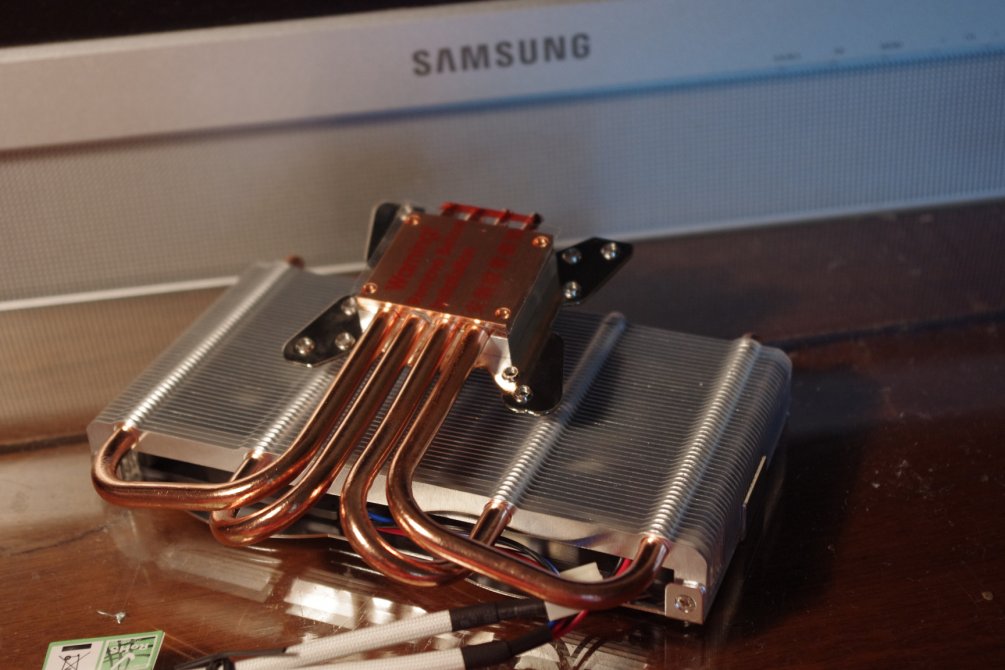 Вобщем отгибаем немного площадку с тепловыми трубками (аккуратно) и вуаля все становится как влитое. Крепится на два винта, прижим хороший Из родного радиатора выпилил охлаждение на элементы питания, прокладочки сделал из алюминиевой банки.