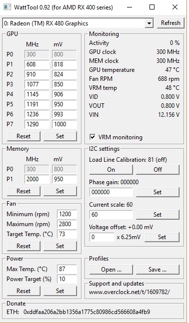Q: Какое напряжение на чипе и контроллере памяти(КП) должны быть? A: Напряжение на чипе должно быть не меньше напряжения на контроллере памяти. Ваттман (и прочие утилиты) регулирует напряжение на КП, хотя написано что это напряжение на памяти!