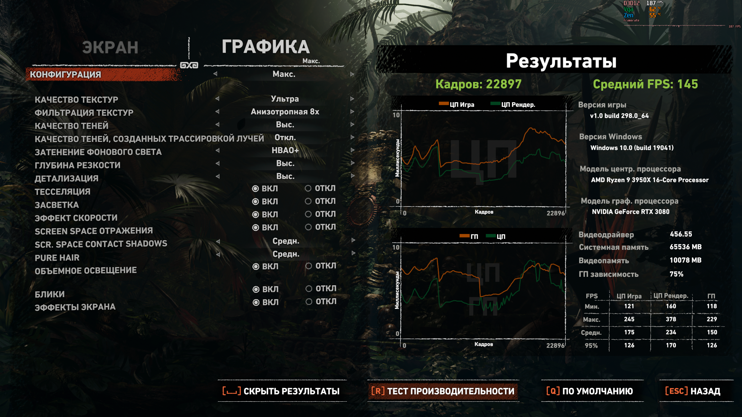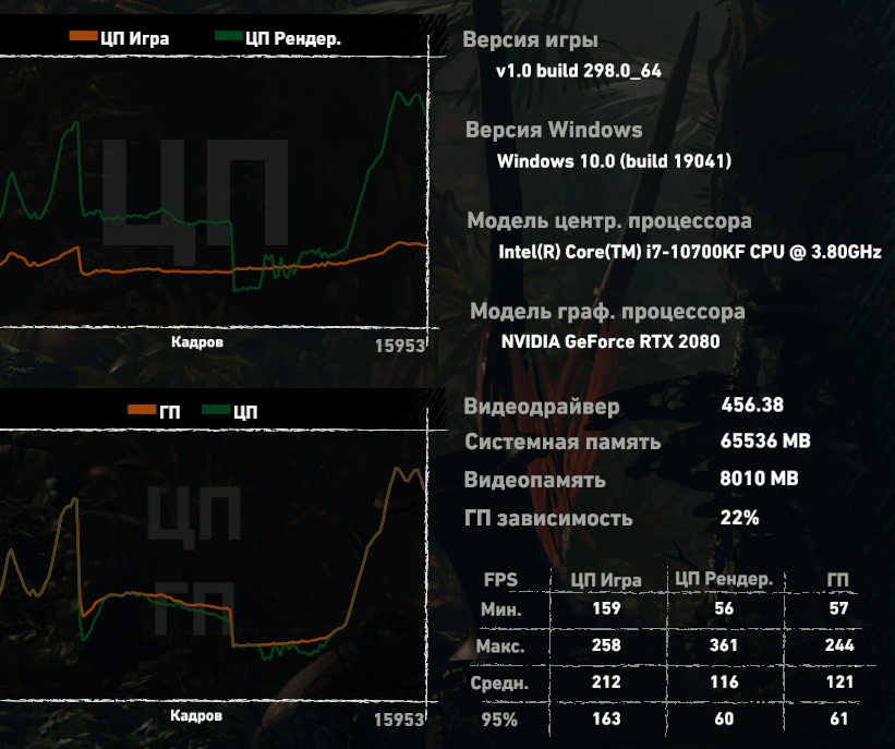 midinada ну так прогони в 1080п сам, увидишь, что ЦП-игра не меняется. Или тебе это сложно? К твоей видяхе у меня нет вопросов. твой 9700к показывает весьма низкий результат, это просто факт.