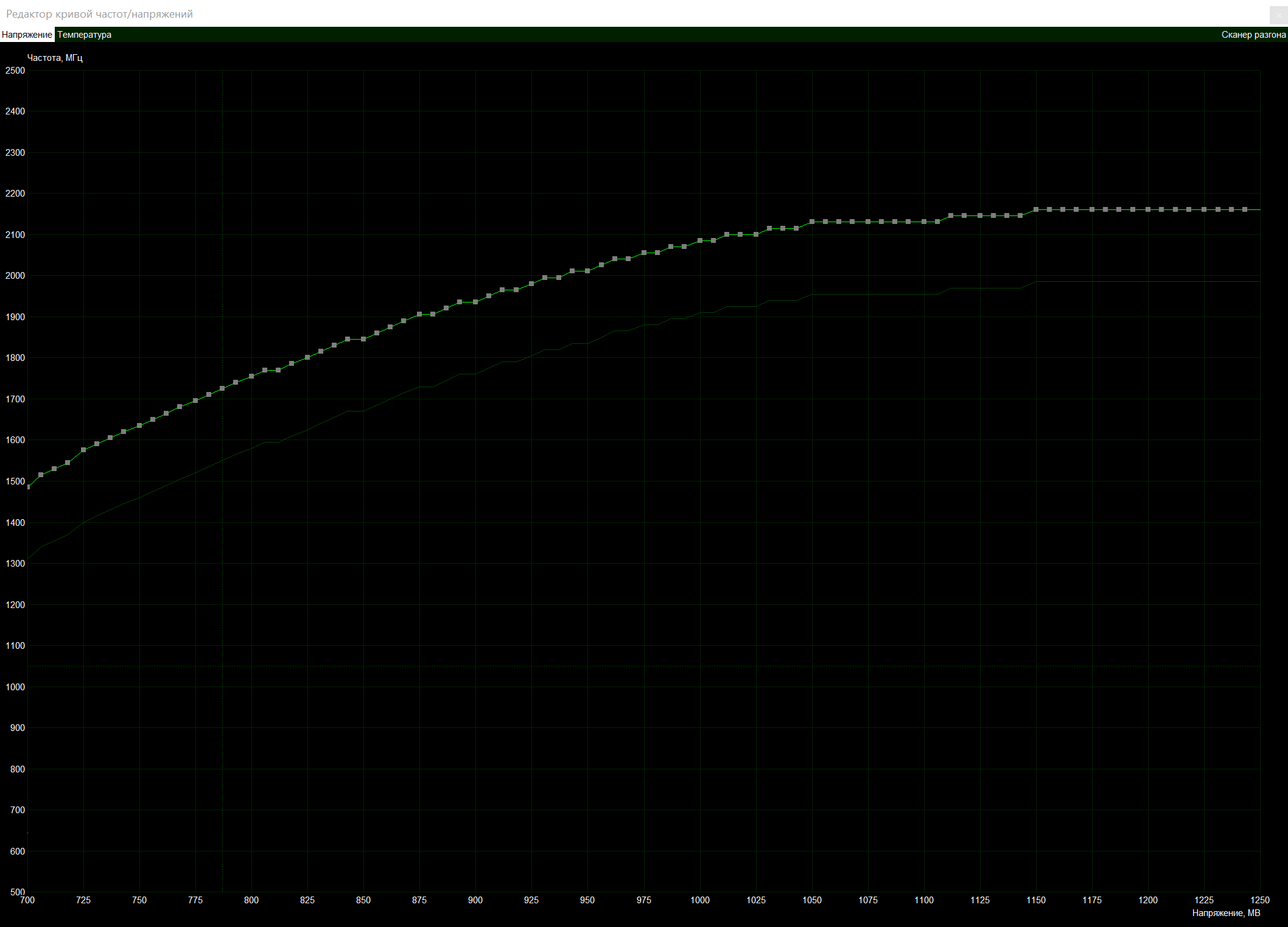 BIOS 330W. Настройки в АВ такие же как у тебя (курву пошагово не редактировал, просто +179МHz GPU, +850MHz видеопамять, напряжение GPU +0; PL сделал 110%, т.к. даже и до 330Вт в играх не доходит никогда). Ну и, короче говоря, попытка задать более, чем +179MHz, неизбежно сразу приводит к ошибке теста - соответственно, и попугаев набрать побольше не получается. Возможно, в чём-то туплю, но позвольте вопрос (ко всем): что, ~50°С GPU это потолок, и все температуры, которые выше - уже ограничивают разгон тупо на одном и том же уровне?!