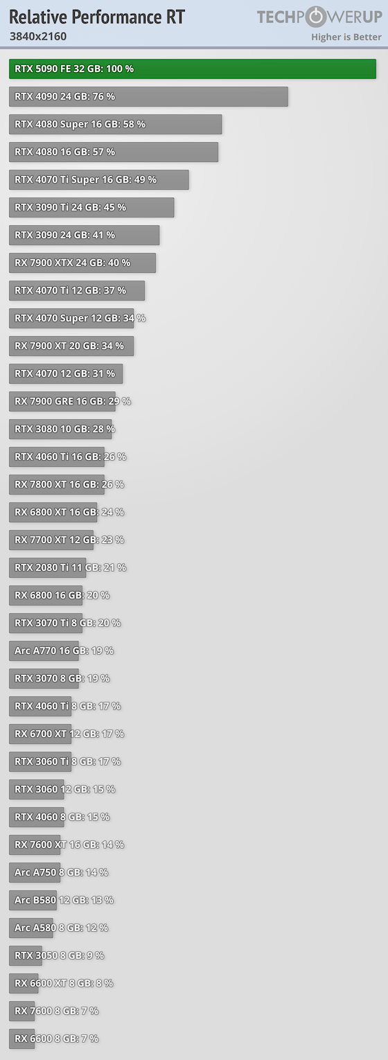 Видимо там всё-таки есть упор в цп, как минимум частичный. Там где его точно нет почти везде 30%+, что очень предсказуемо. 40% это скорее исключение. Можно просто считать по количеству ядер и получать приблизительную производительность для остальных карт. Кто там надеялся на 5080 быстрее 4090.
