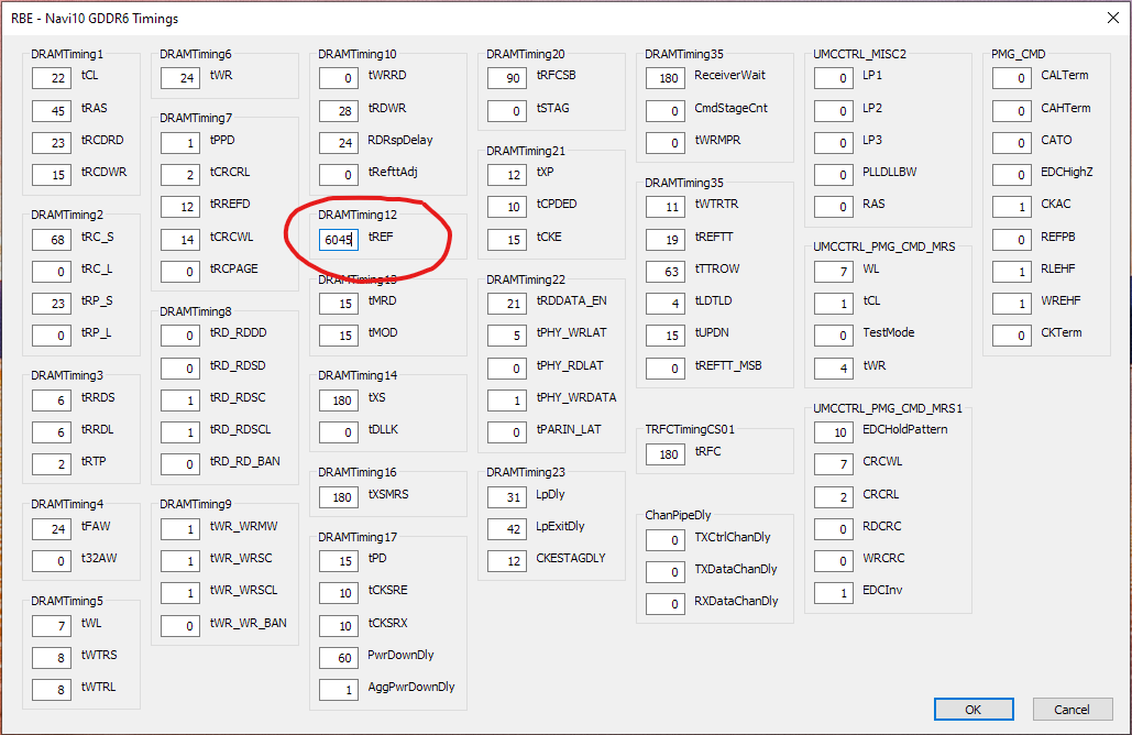 Изменяете tREF на нужный (встречались значения 8000, 8500, 9000,12000, 16000) Затем жмете OK, строчку кодированных таймингов 1500(1550) копируете и вставляете на частоту 1800. Дополнительно: Более агрессивный вариант изменения выше приведенных таймингов - для частоты 2000 ставим значения tRRDS 6, tRRDL 6, tFAW 24, tWR 24, tREF 9000 готовый вариант для вставки