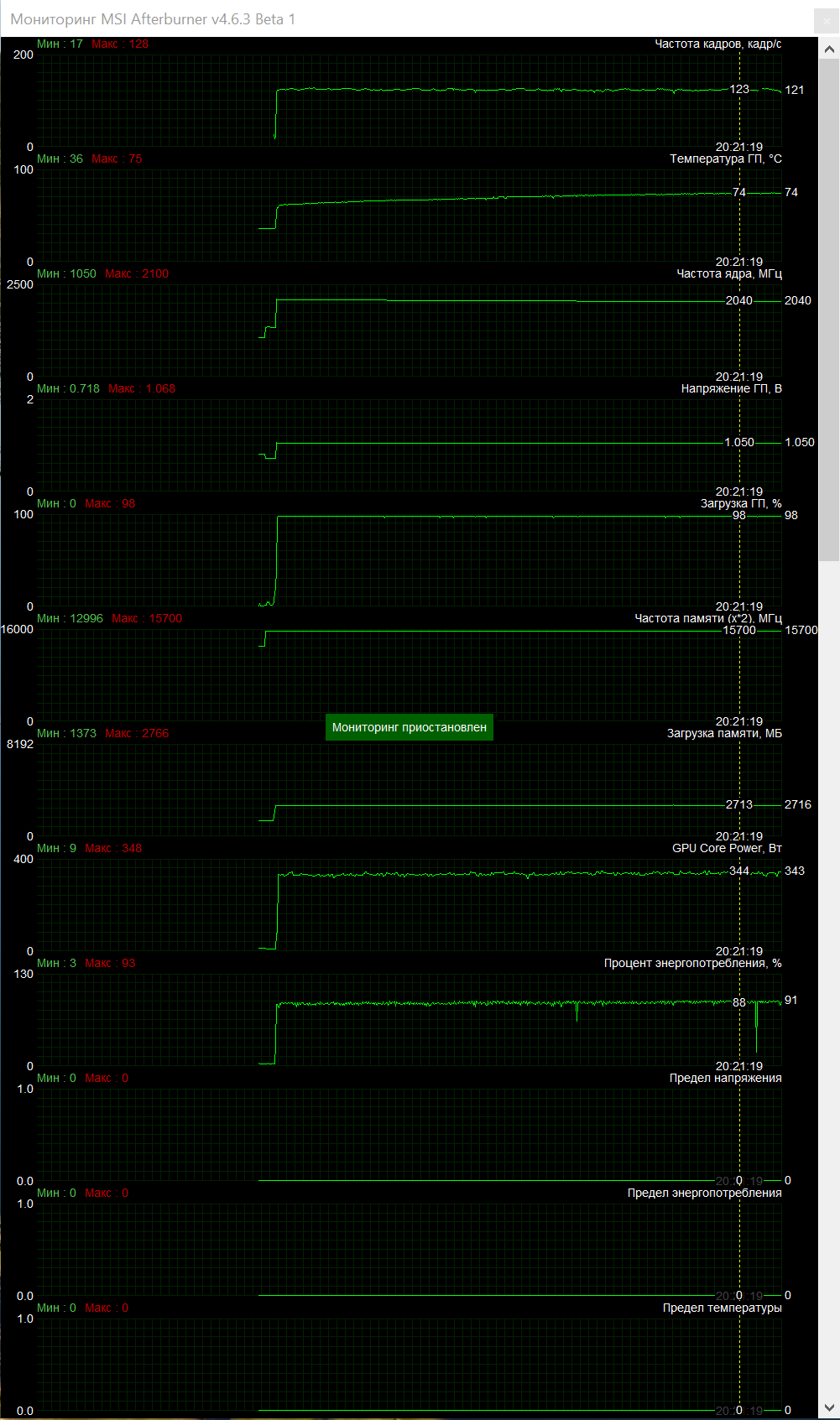 Отсюда напрашивается вывод - надо повышать лимит карты или понижать напряжение. С уменьшением напряжения карта возможно не будет стабильна на 2130 и придется еще и по частоте в этом случае подвинуться. Ну или ищите биос с повышенным лимитом - тогда ваша проблема уйдет.