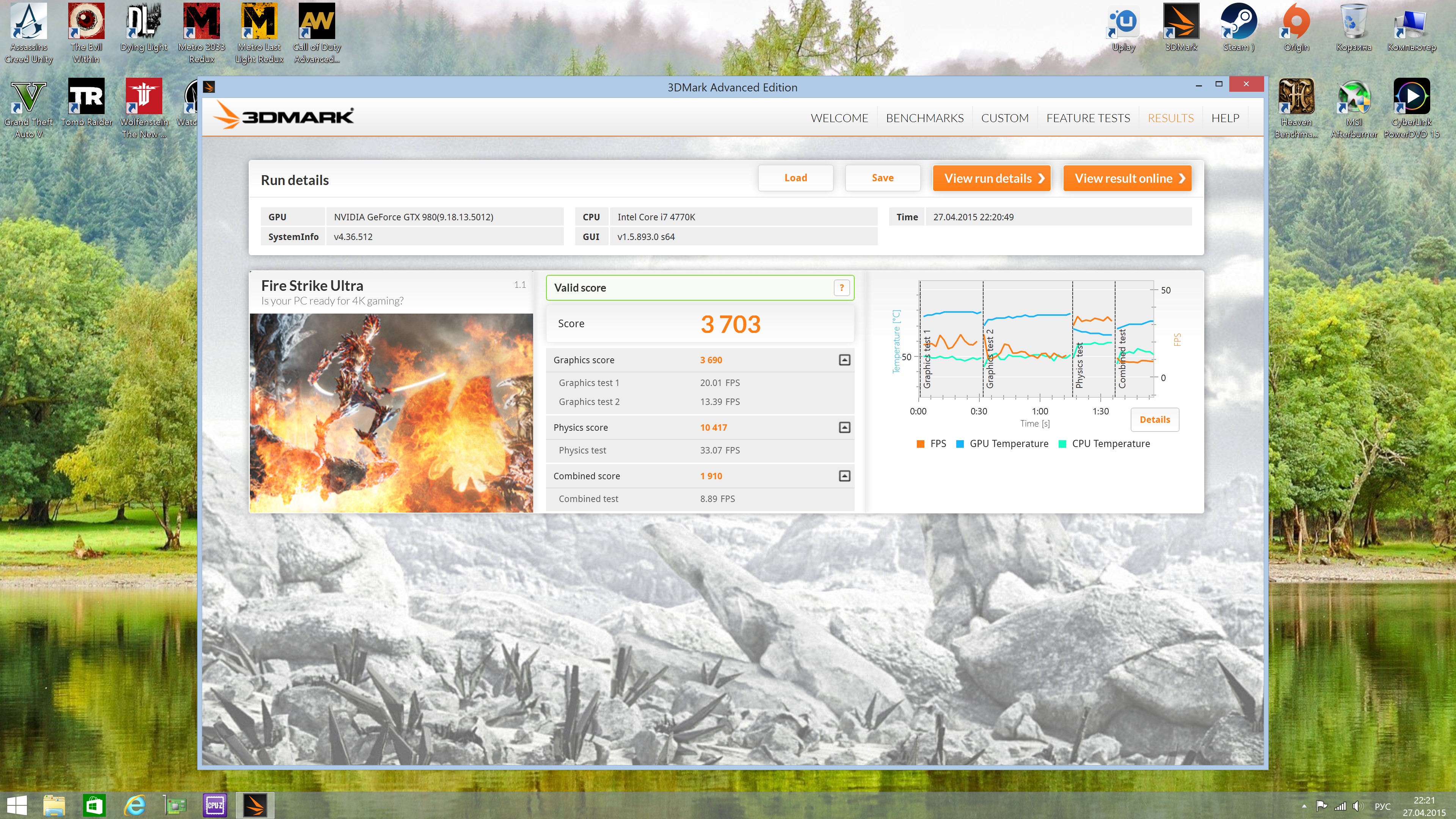 Silivoncik С температурой явно что-то не то. Для Гиги 980 Г1 с ее радиатором на 600ватт такого быть не должно. Проверь все ли вертушки крутятся. И частота скачет у тебе отчего? Ведь энергопотребление сдвинуто в биосе аж до 300ватт. Странно очень.