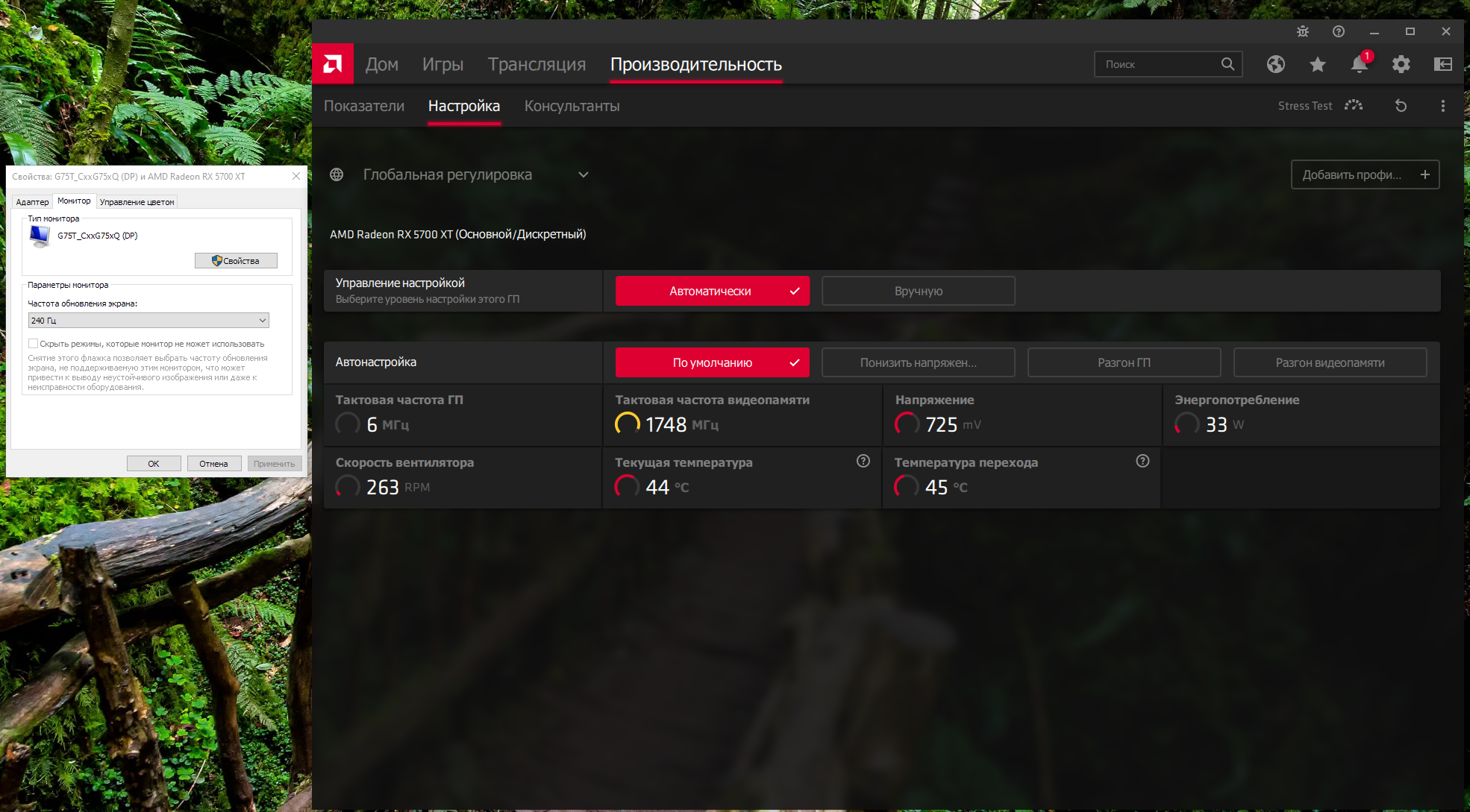 включил снова 144гц - и вот - ДОПИЛЕНО - частоты в простое перестали маслать на 1750 и работают как надо - 200мгц простой при 144гц, ух харашо.