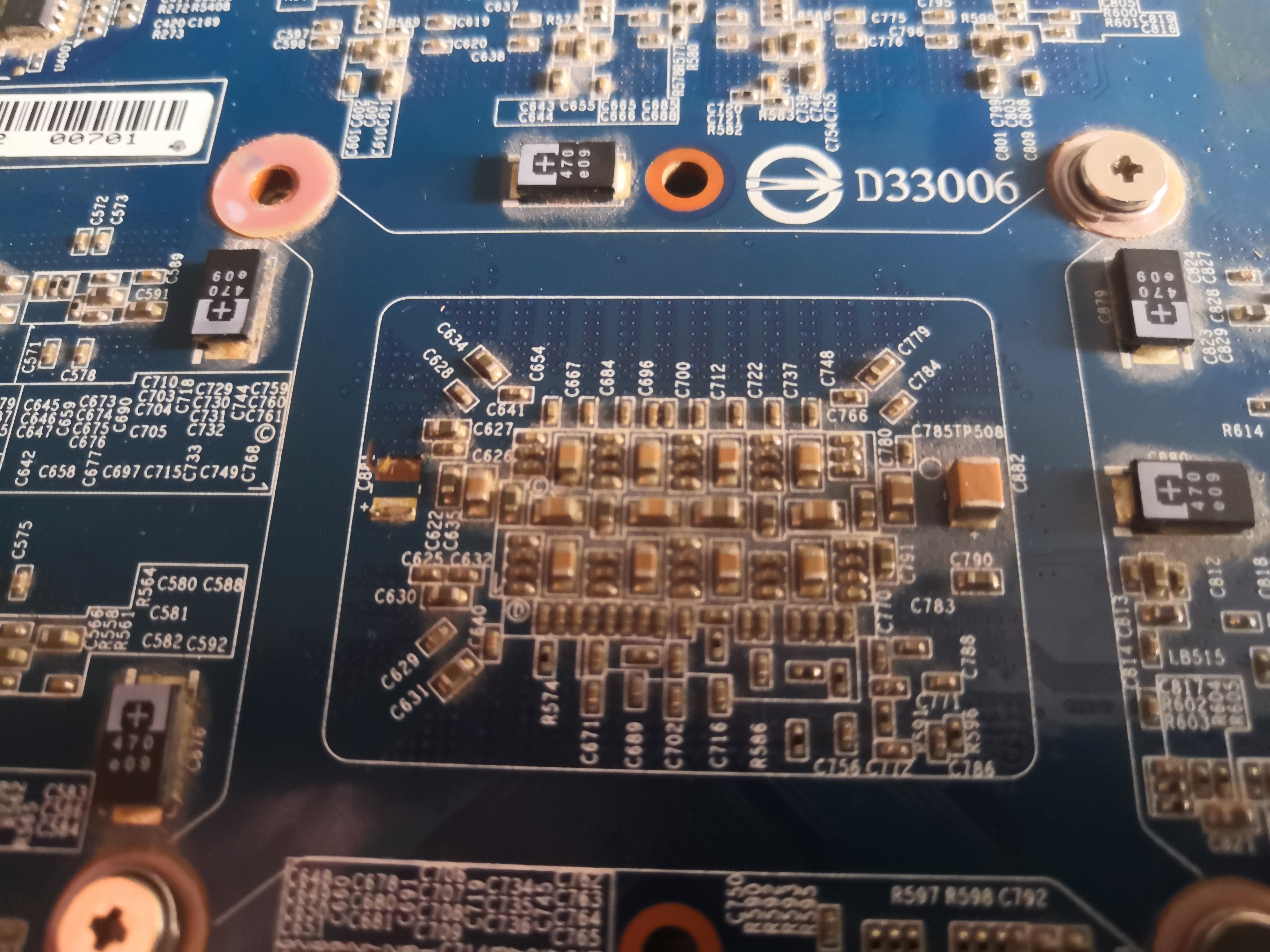 Подскажите пожалуйста, в центральной части (примерно) один смд-кондер отсутствует, один из двух самых крупных. C881, на фото - слева, на удалении от центра (примерно) - правый C882, как ориентир, если не особо видно. Чем это грозит, и можно ли найти где-то его? GV-N4600C-1GI ревизия 2.0 P.S: как тут нормально под "спойлер" запихнуть?)