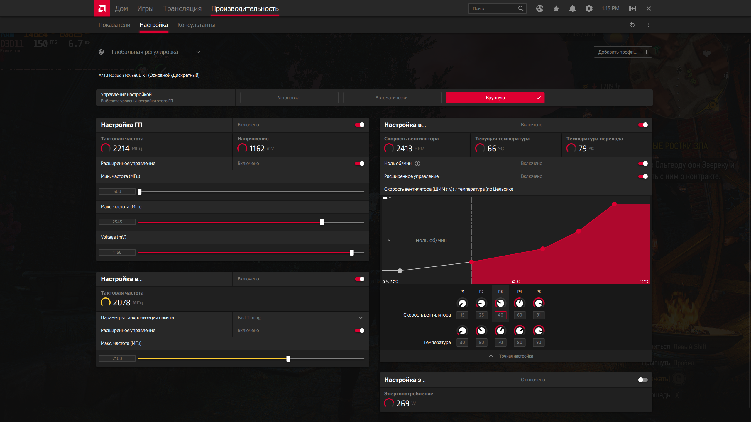 упд: а вообще у меня для ведьмака настройка частоты ядра выставлена в 1500 (и не рабтающий лимит напряги на 900). в этом случае кадры такие, а карта на расслабоне и тепературы вообще в районе 65 хотспот и 55 ядро. я также еще через МПТ выставил минимальное напряжение на ядре 656мв - потребление падает на мелких частотах прилично.