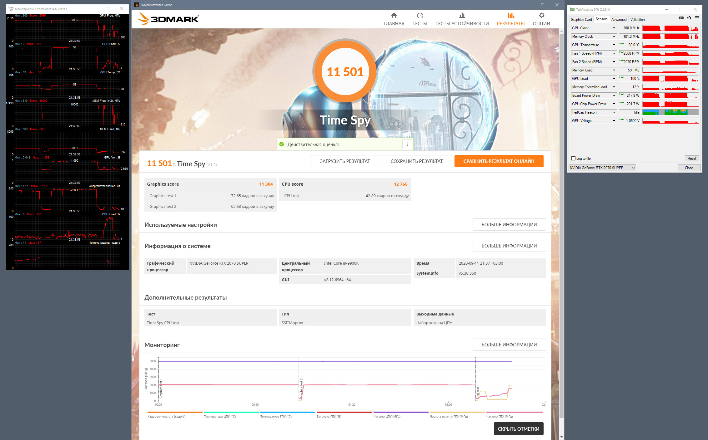 3DMark Time Spy ★ curve (макс. для прохождения) ☆ 11304 ☆ упор во все лимиты (что у вас наблюдалось)