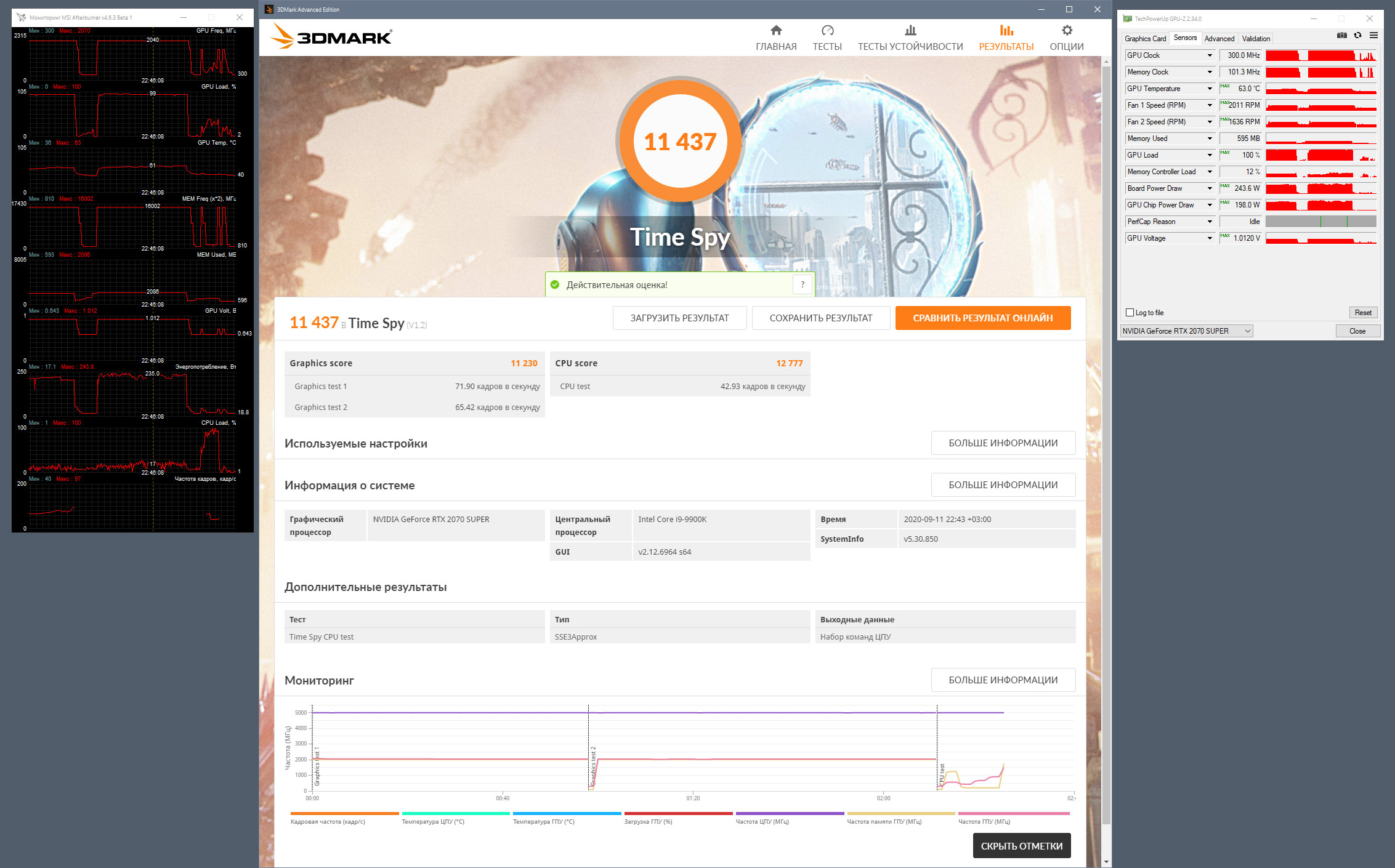3DMark Time Spy ★ +85MHz ☆ 11244 ☆ (макс. для прохождения) ☆ упор в лимит потребления