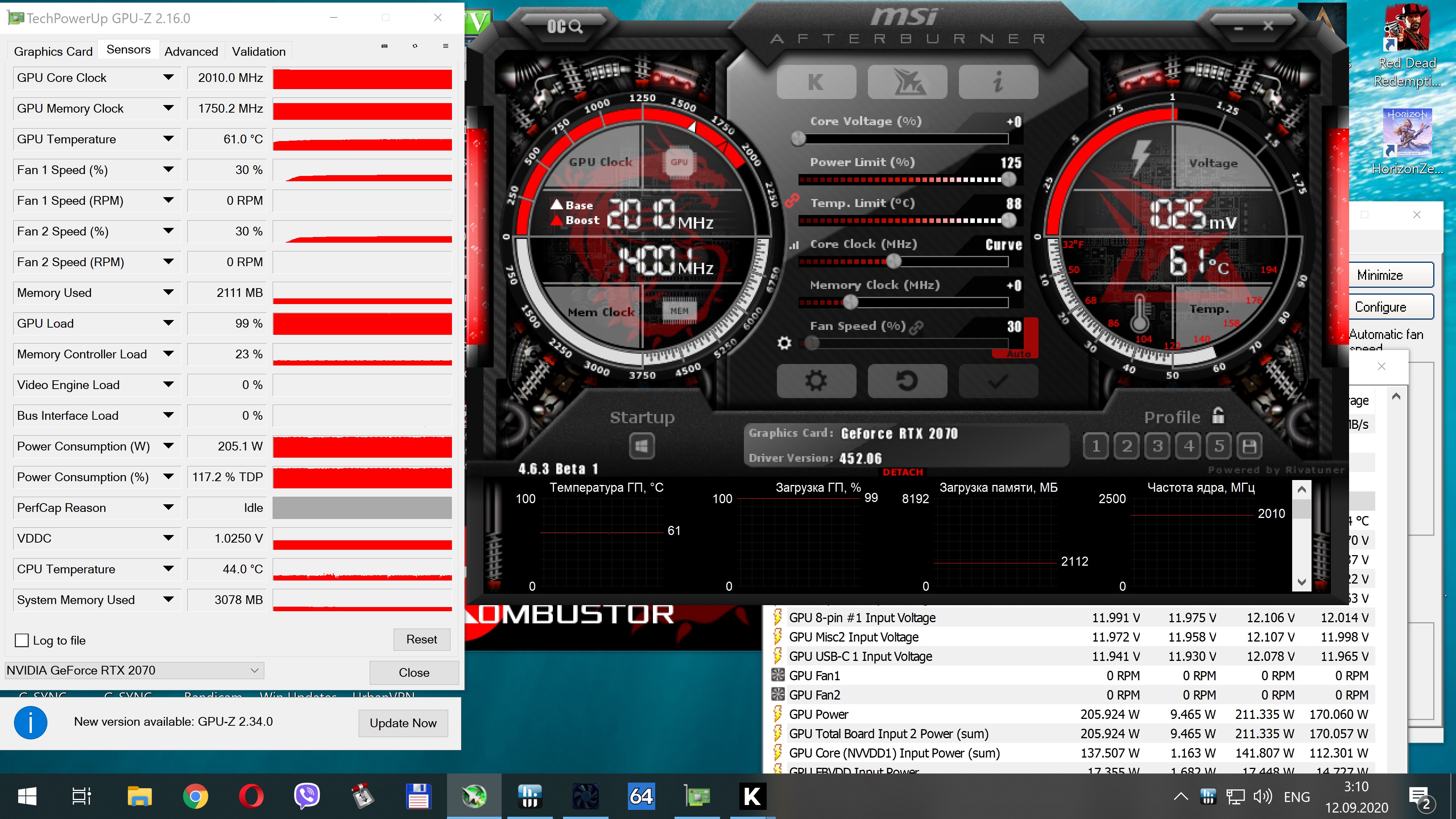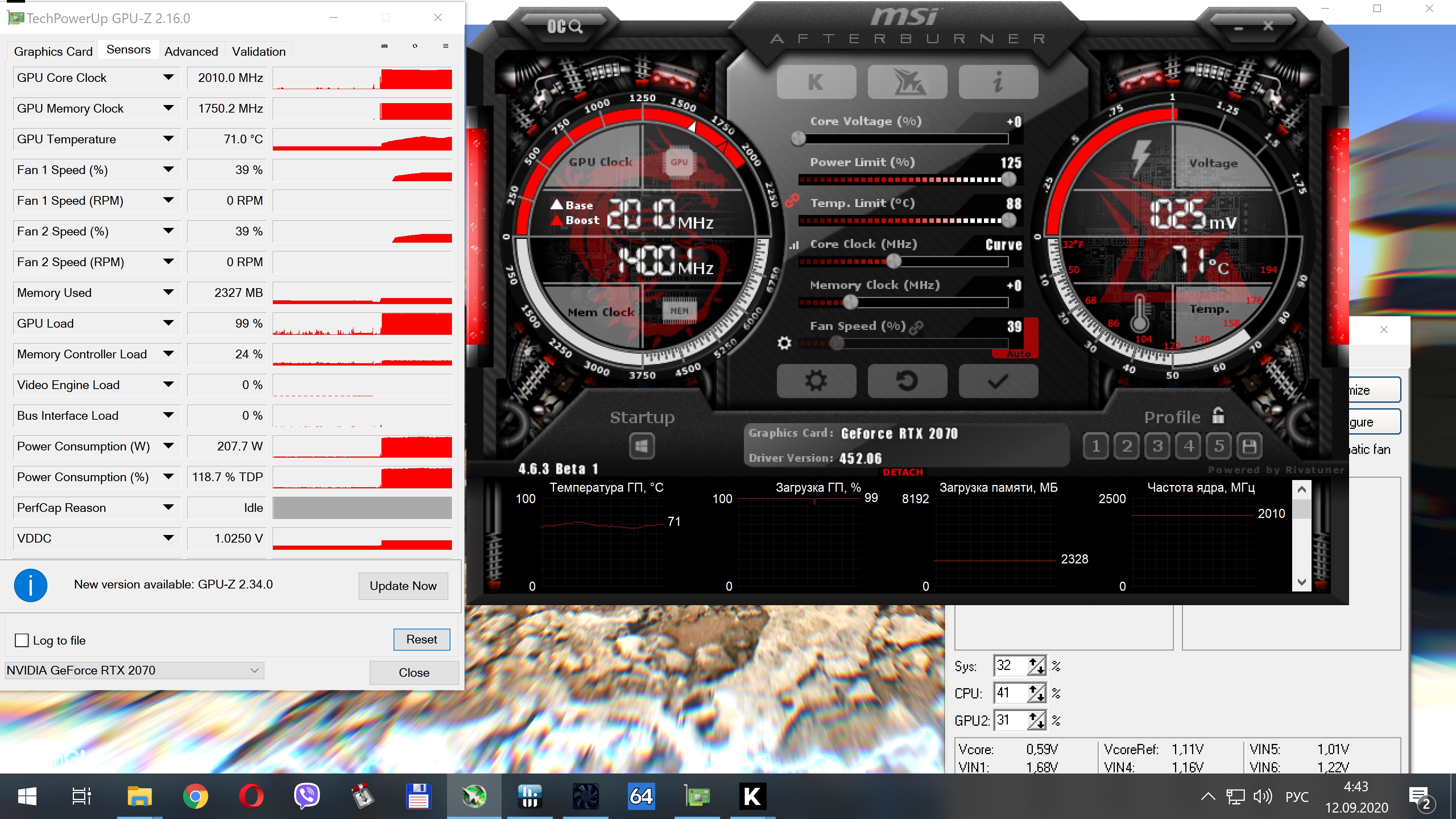 Имеется: MSI 2080 ti Lightning Z (используется на bios'е LN2 с PL 300 W): Вольтаж - ползунок влево до конца -100 mV Power Limit - 90% Ядро + 200 MHz Память + 1100 MHz Курва немного подстраивалась.