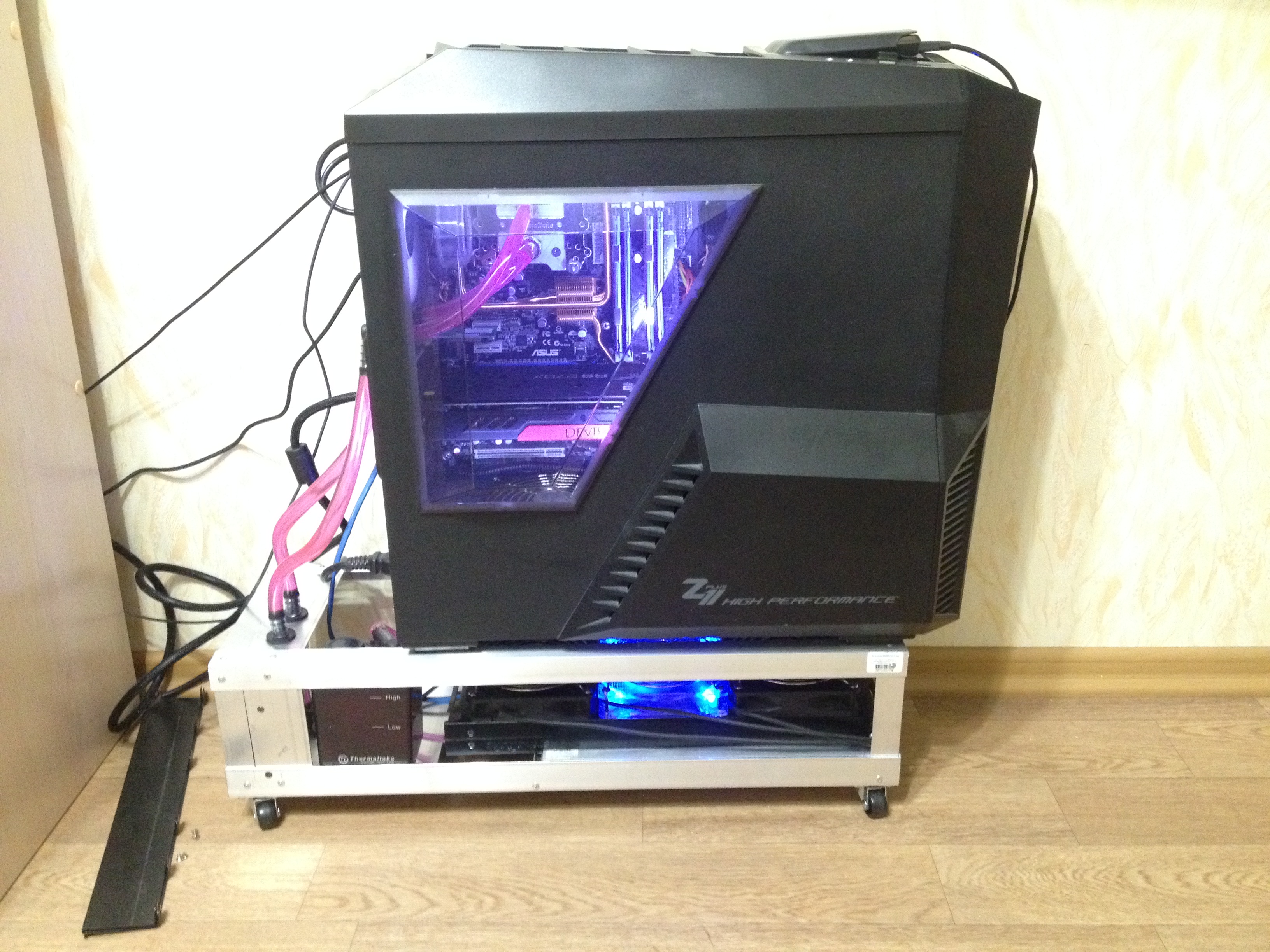 А ну да, вы же тестили с открытой крышкой. Странно это все короче, может блок перегревается от жара с видеокарты? Обычно блок не так ставят, а чтобы он свежий воздух засасывал.