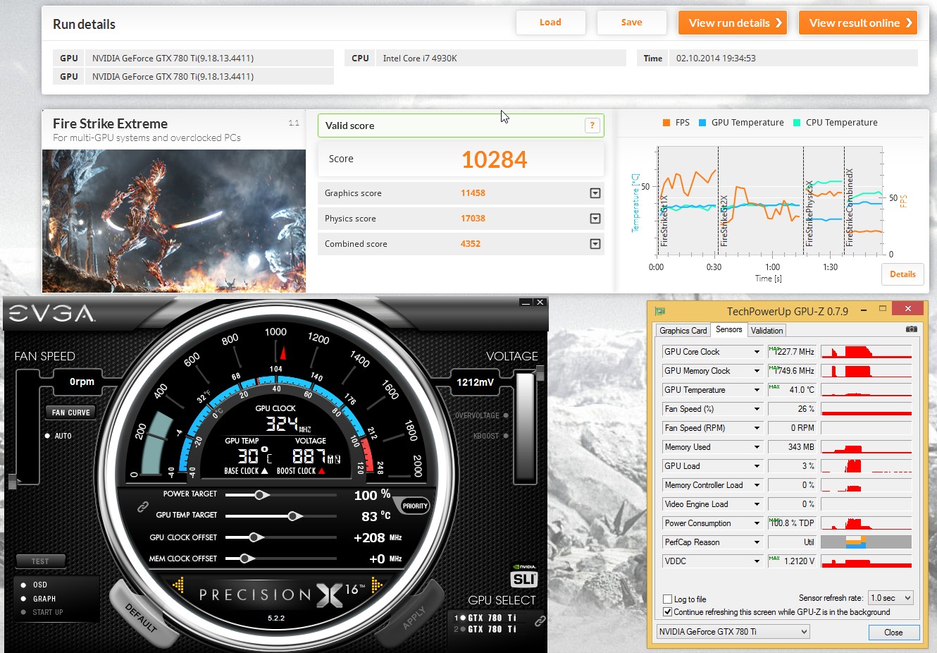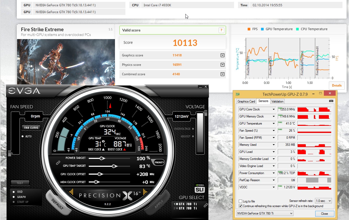 Сейчас вот потолок поискал + протестировал одну карту отдельно. Стоковый биос скайнета для моей карты, таблица буста стоковая 1202. Напряжение в EVGA PX зафиксировал на 1212mV SLI (почти потолок, при повышении ядра - артефакты)