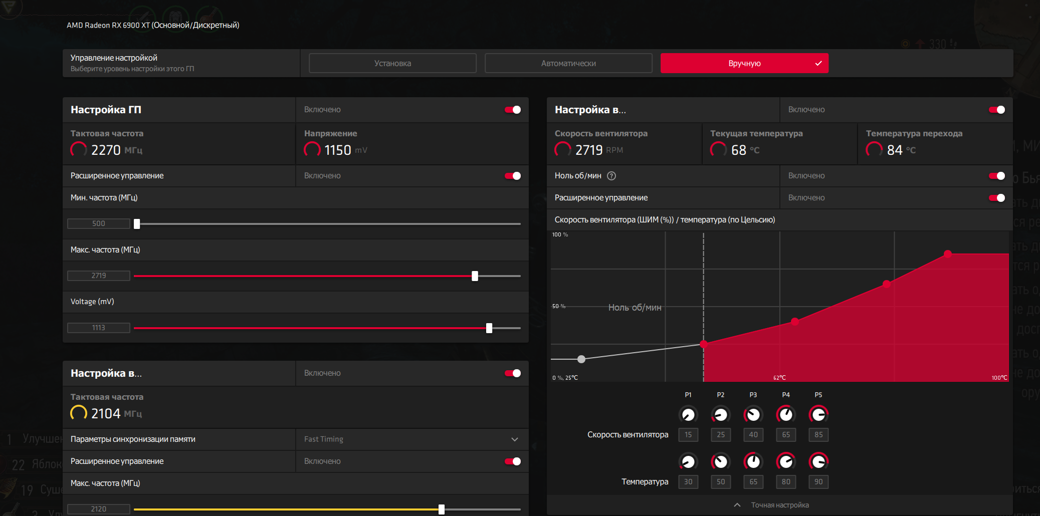 упд: температура чипа и хот-спота отличаются драмматически, у меня хот-спот холоlнее на 20 градусов при схjжей настройке вентилей на карте xfx merc ultra 6900 xt (stock: 2499mHz/1175mv, 2000mHz, 290W)