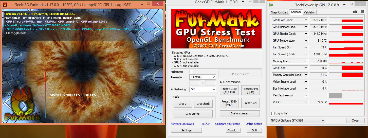 2. По замерам реального напряжения на видеокартах мультиметром, можно с уверенностью сказать, что мониторинг видеокарт не отражает реальное напряжение на GPU. Реальное напряжение выше на 0,015-0,008 Вольта, чем значение, которое выводит MSI Afterburner, всё зависит от конкретного случая, уровня разгона и режима в котором работает карта (замеры и доп. инфа на стр. 251-254 данного топика).