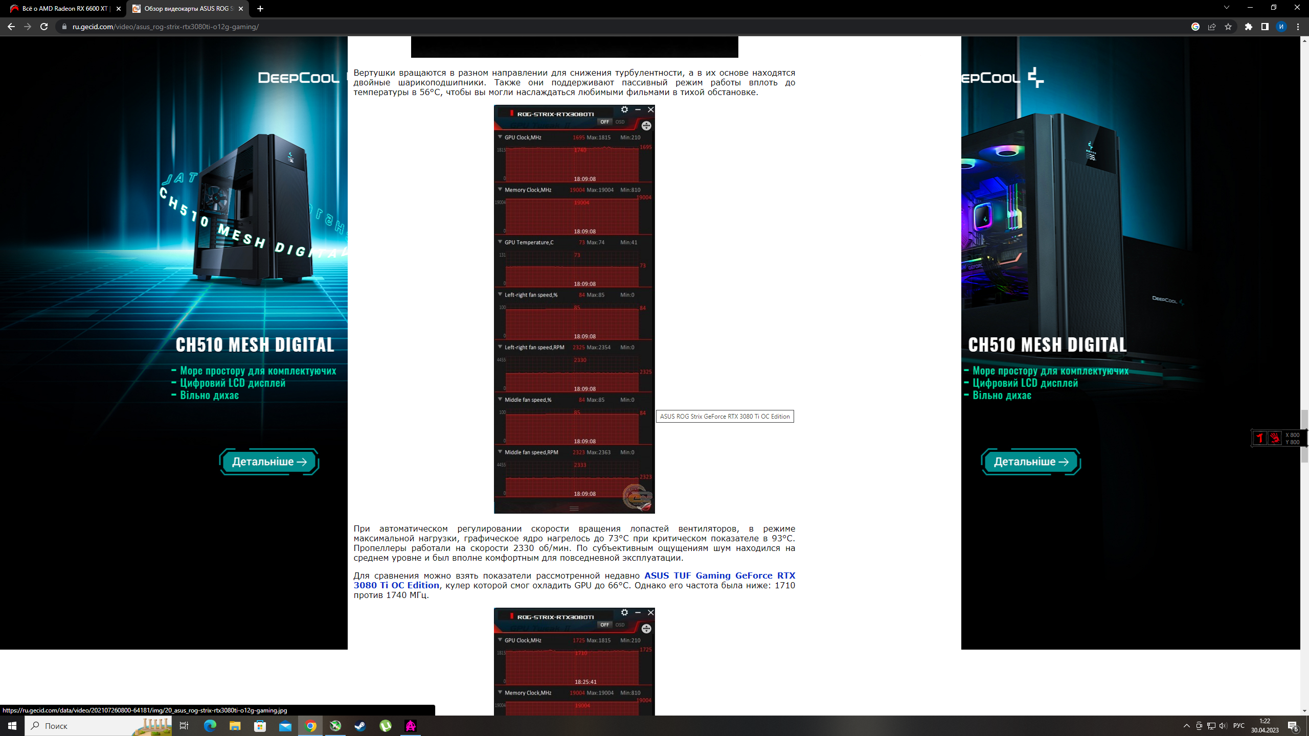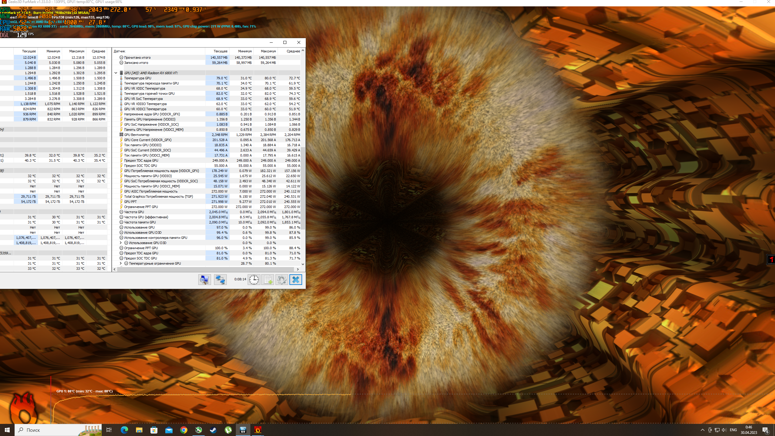 Чел там почти 3к оборотов а это уровень шума как у пылесоса и андервольт , у нормальной 6800хт сапфира нитро SE 1.2в из коробки и лимит 300ватт при этом гпу 70-75 и хотспот 105-110, такая карта в соседнем компе и я был в шоке когда тестировал её . Больше всего убил ответ из саппорта сапфира, бла бла бла это норма и что то на умном