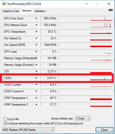 Ниочем не говорит. У меня тоже в гпу-з есть порой всплески до 1,7в, если поставить max значение, при переходе из 2д в 3д. Это глюк программы имхо. Или такой режим запуска нагрузки у врм.j Замечал такое на всех своих радиках начиная с 4870.
