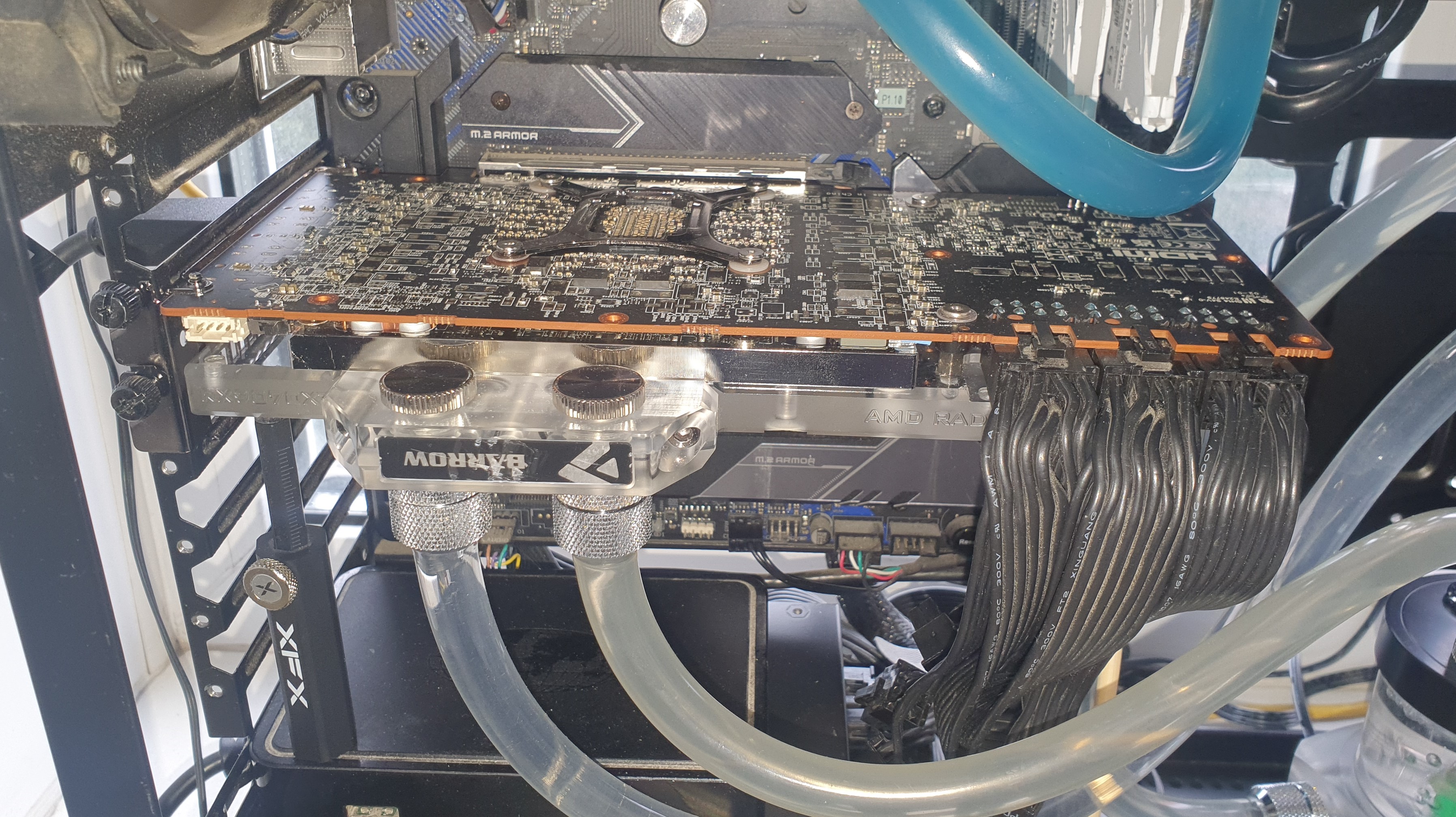 Этот двухвентильный Yeston плюсом двухслотовый https://overclockers.ru/blog/molexandr/ ... lazhdeniem Если ее чикнуть до +-270Вт, то может и будет норм. Вертухи наверняка постоянно на высоких оборотах будут, даже с андервольтом.