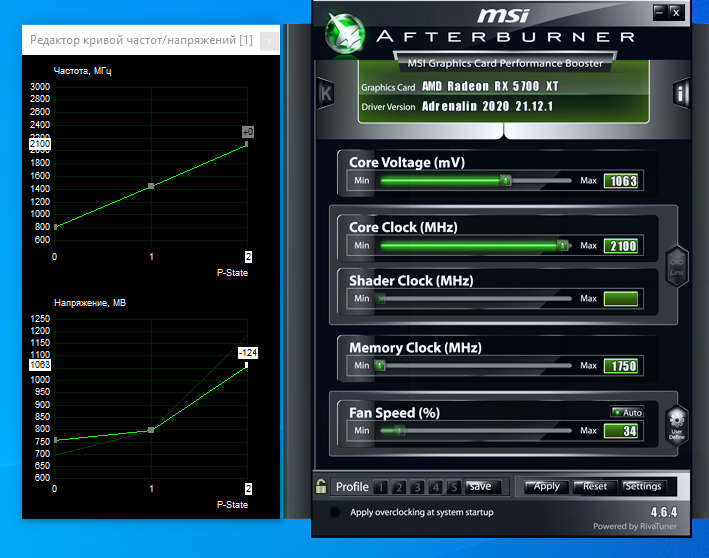 Скинь пожалуйста скриншот твоих настроек мин и макс частот и напряжений по ядру и памяти.