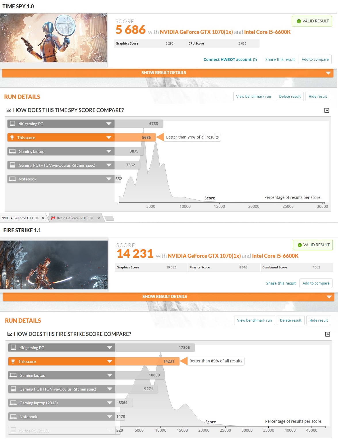 Я тоже разгоню, не помню с разгоном у меня time spу или без, в fire srike 12000 очков с разгоном) Зачем скринами? Есть кнопка вывести результат онлайн и будет ссылка