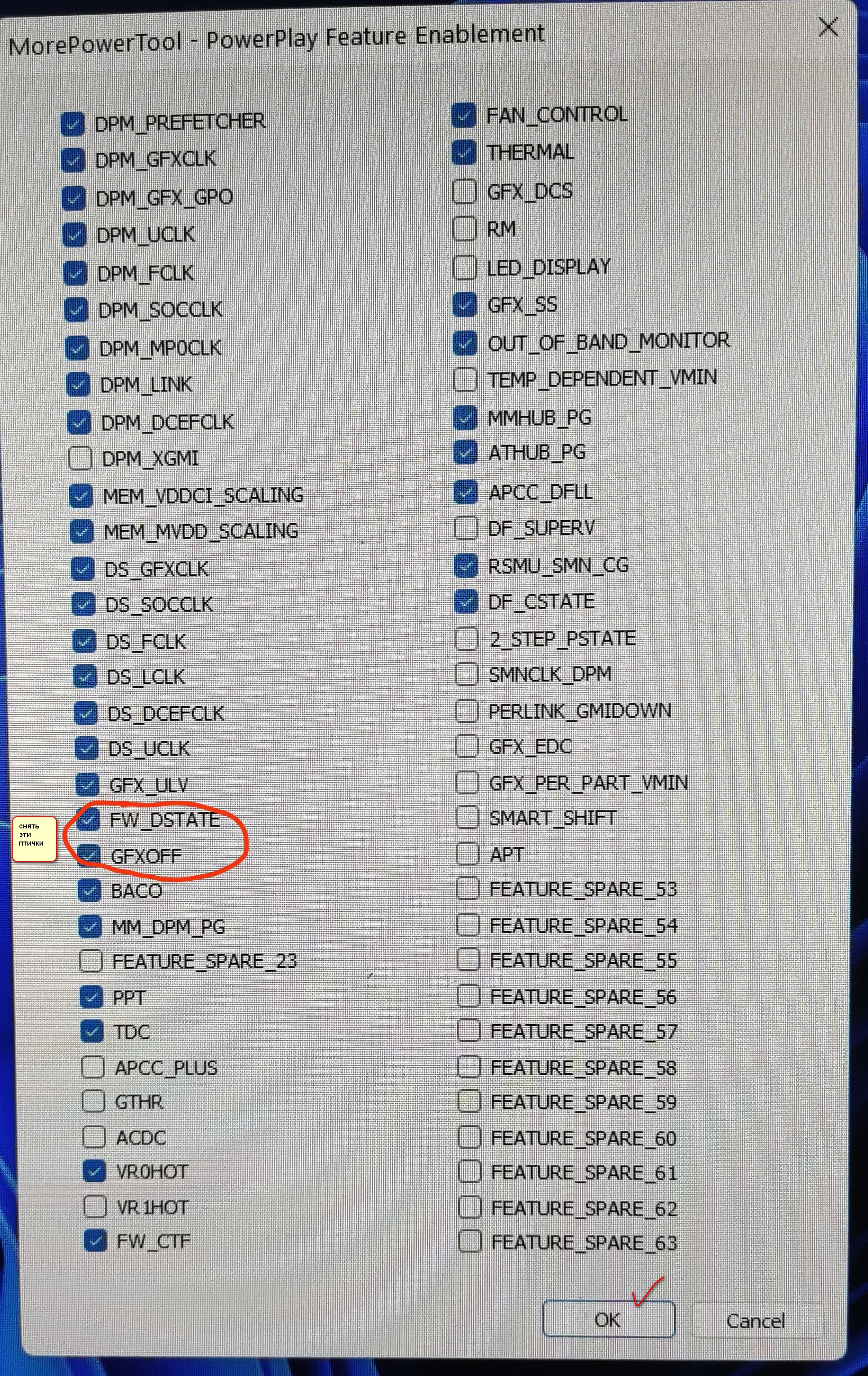 7. Нажимаем Write SPPT 8. Перезагружаемся. Всё. P.S. Для карт 5000s есть решение на постоянку путём создания измененного биос (с помощью программы red bios editor и последующей прошивки AtiFlash), биосы карт 6000s пока не поддерживаются red bios editor. P.S.S. FW_DSTATE и GFXOFF это вроде режимы энергосбережения как написали знающие люди.. Кому поможет отпишитесь, решение в шапку добавьте, чтобы люди не страдали.