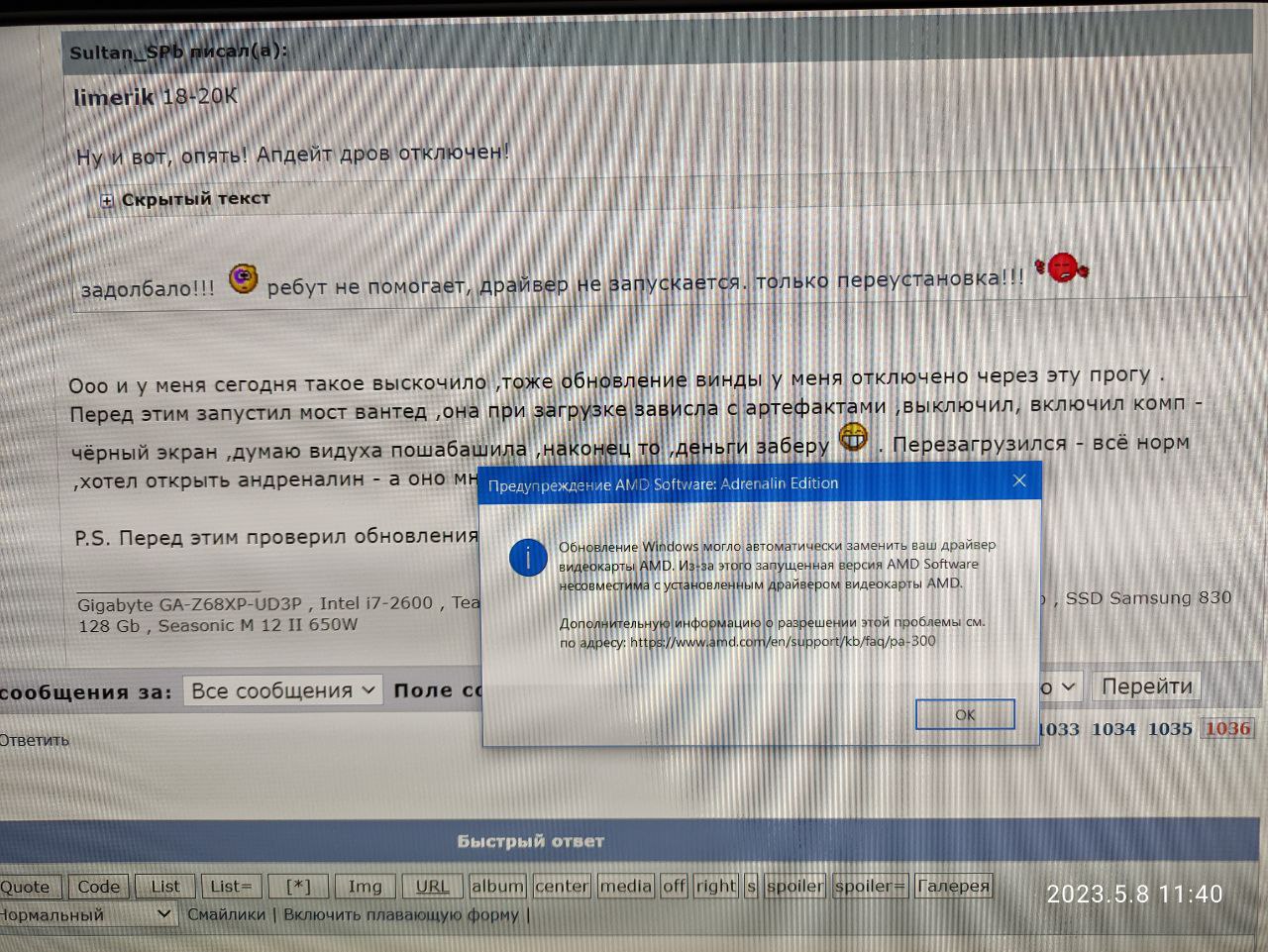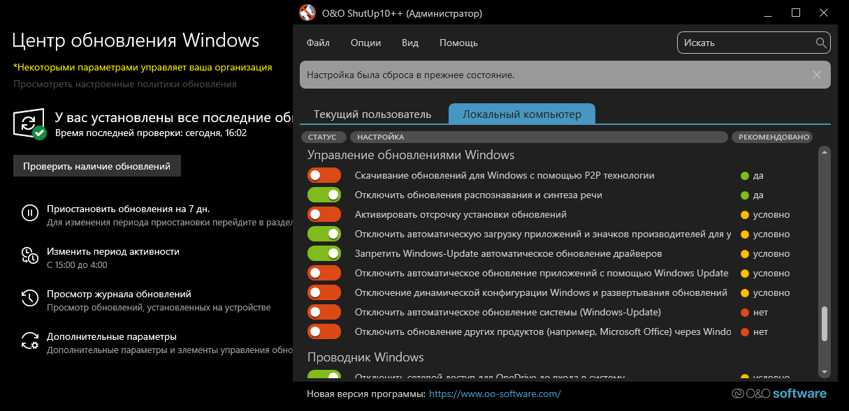 Ооо и у меня сегодня такое выскочило ,тоже обновление винды у меня отключено через эту прогу . Перед этим запустил мост вантед ,она при загрузке зависла с артефактами ,выключил, включил комп - чёрный экран ,думаю видуха пошабашила ,наконец то ,деньги заберу . Перезагрузился - всё норм ,хотел открыть андреналин - а оно мне такую же табличку выдало .