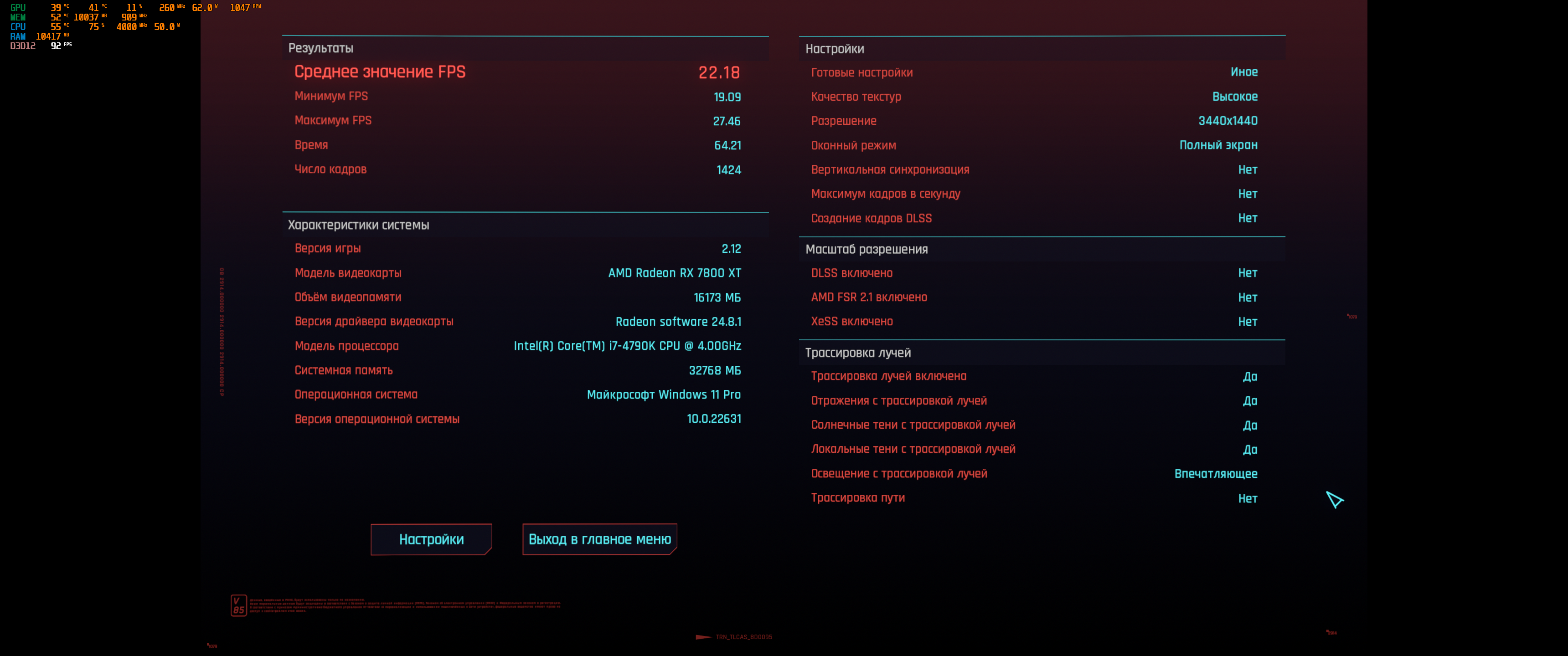 Нормально у вас всё в тесте, но не забывайте что тест не игра. Тест ограничен статичной сценой + тест от оригинальной игры, в Phantom Liberty дела обстоят чуть хуже с производительностью.