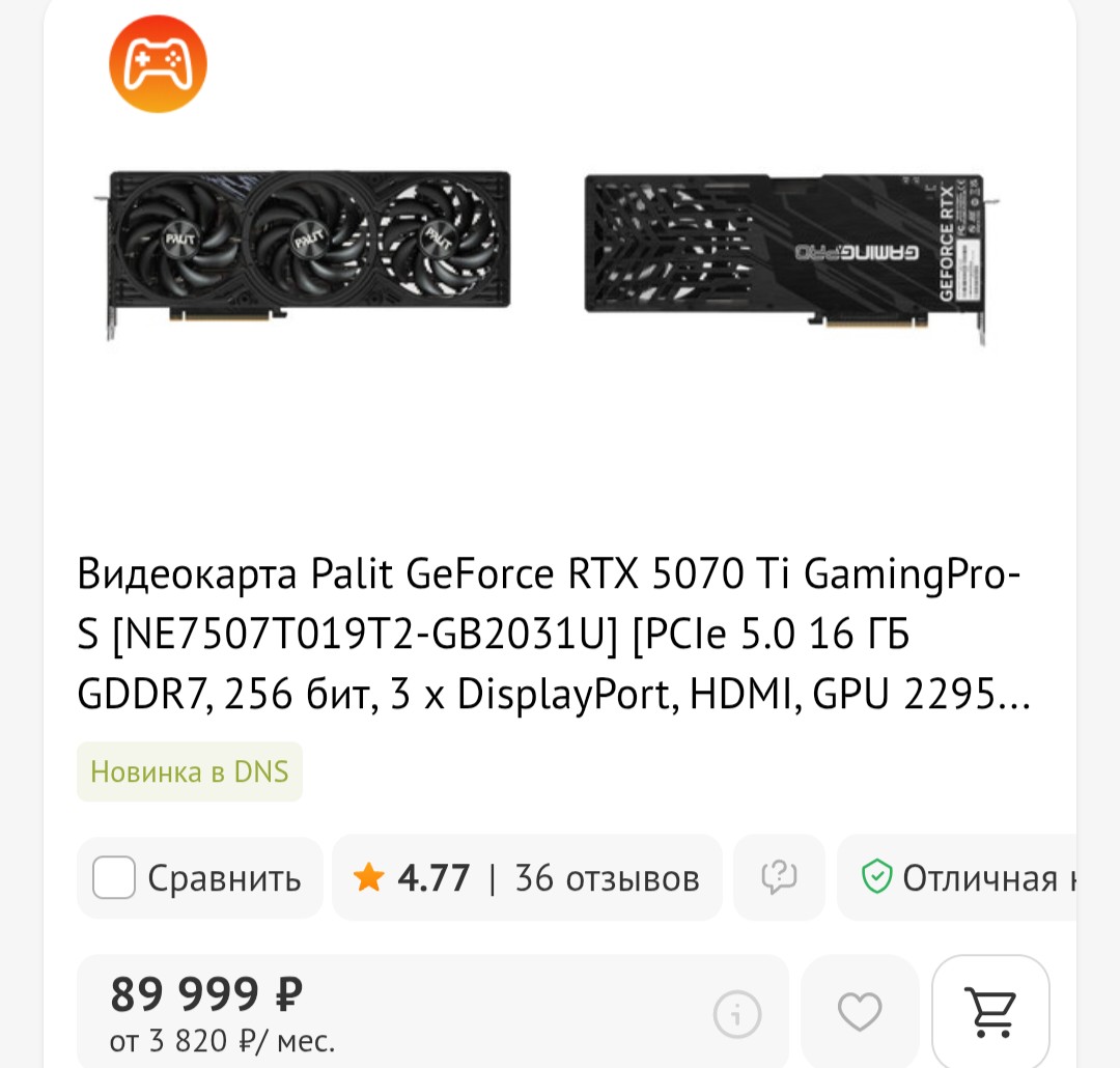 купил 9070xt пусть и гигабайт, но за 65к с гарантией днс 3 года совершенно новую. самая опущенная версия курточной 5070ti палит геймингпро минимум на 10к дороже.