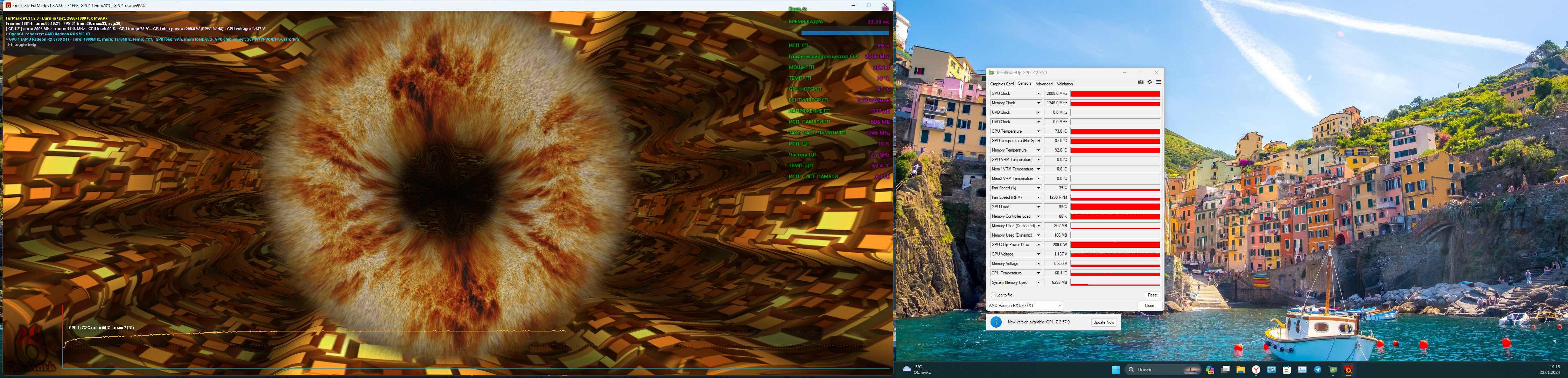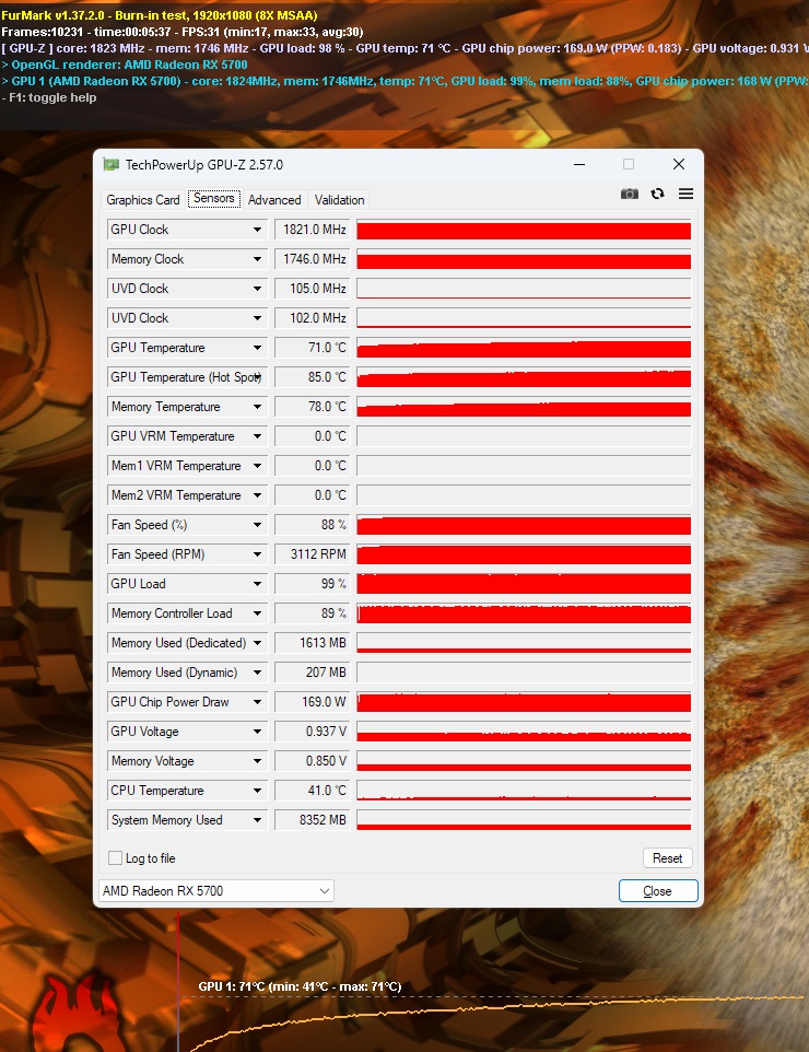 Добавлено спустя 5 минут 42 секунды: Вот мой 10 минутный фурик на максималках. Выше температуры не идут. Но 35% крутиляторов это конечно жестко...