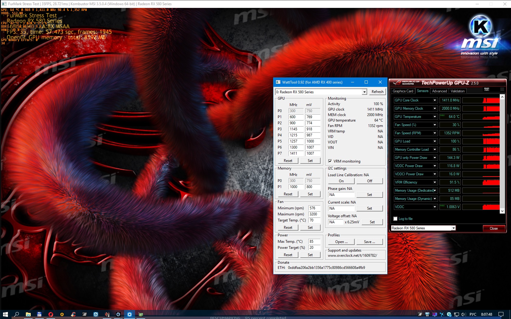 Q: Моя карта в фурмарке вместо 1290МГц держит только ~1100. Идти сдавать карту? A: Furmark (особенно без сглаживания) крайне сильно и нетипично нагружает карту. Очень сильно повышается энергопотребление! Карта дабы вписаться в лимиты потребления вынуждена сильно снижать частоту. В реальных играх и любых других бенчмарках подобной ситуации не наблюдается. Если некоторые карты и снижают частоты, то незначительно! По этому тестировать карты Polaris в фурмарке и делать на этом основании выводы не рекомендуется.