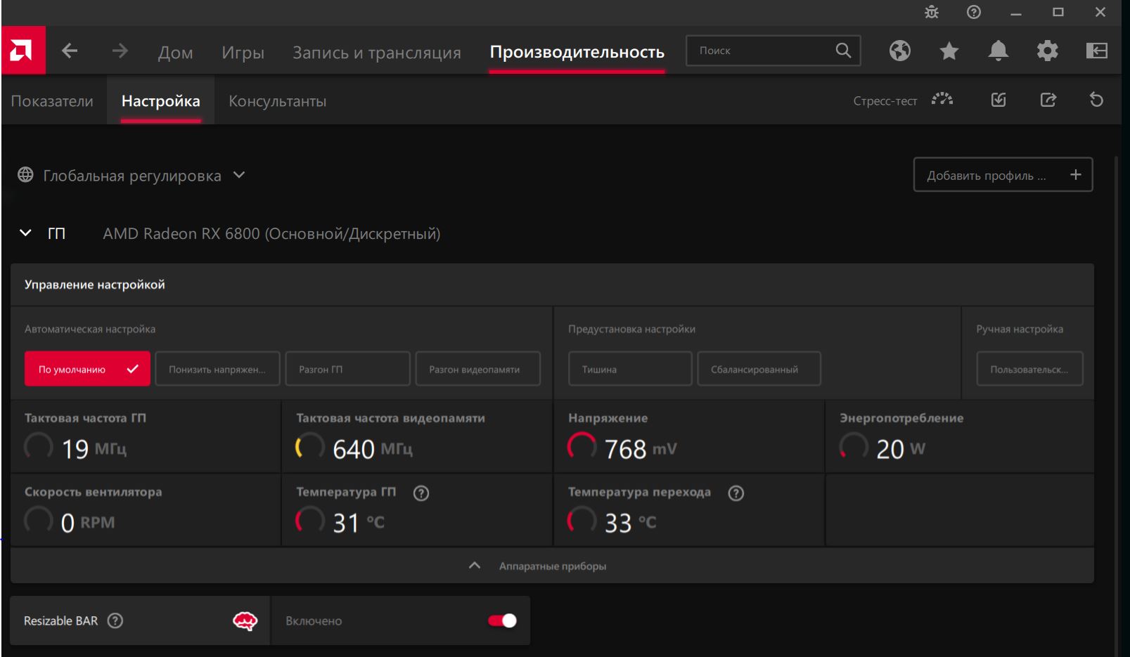 - Установить последнюю версию Windows 10 1903/1909. Как это сделать можно прочитать здесь https://www.microsoft.com/ru-ru/softwar ... /windows10. - Осуществить подключение питания карты рекомендуется двумя отдельными кабелями во избежание возможных проблем с блоком питания, с самими кабелями и пиковым потреблением. - Использовать блок питания рекомендуемой производителем карты мощности. - Необходимо учитывать, что некоторые запущенные программы по мониторингу (afterburner, gpu-z и подобные) могут вызывать различного рода проблемы в работе карты и поведения карты в игре (статтеры, снижение fps, сбой в работе вентиляторов). В некоторых случаях были проблемы c оверлеем Adrenaline. (данная рекомендация может считаться устаревшей, в случае использования последних версий драйверов и обновлений Windows). - Разгон оперативной памяти может вызывать статтеры, вылеты или черные/синие экраны, если он был произведен без должного тестирования памяти на стабильность. Поэтому перед проверкой карты и ее разгонного потенциала рекомендуется сбросить разгон процессора и памяти. - Порядок установки новой карты: установить новую ОС -> установить драйвера чипсета -> установить прочие драйвера -> установить драйвер видеокарты. - Рекомендуется переустанавливать драйвер после переключения БИОСа на видеокарте, чтобы он (драйвер) корректно интерпретировал новые настройки (эта рекомендация Sapphire, написанная на бумажке, которая вложена в коробку с видеокартой). - Рекомендуется заполнить табличку OC potential of RX 6000 series - Проверить карту стресс тестами и играми (в том числе при при разгоне) в стоке со сбросом любого разгона (в т.ч. памяти и процессора): 3DMark Time Spy, тест на стабильность, 20 прогонов - Одна из рекомендаций по отлову черных экранов и проверки системы на стабильность: LinX (задачи 40000) + Kombustor (1080р), вместе включаем и смотрим приблизительно полтора часа. Предварительно выкрутить вентиляторы карты и системы на максимум во избежание перегрева.