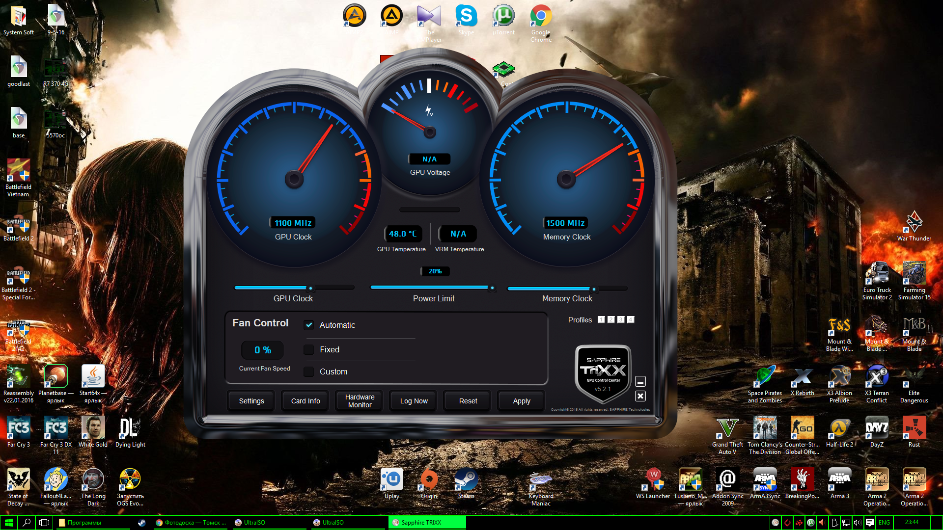 #77 Вопрос, напруга для частот нормальная? Сижу сейчас на этом, r9 270x сапфирка Dual-x 2гб, снизил напругу от наминала + повысил частоты. После снятия вентилятора с памяти перестал держать 1500 на память, а напругу повышать не хочу, ибо карта стала немного мощнее и немного холоднее.