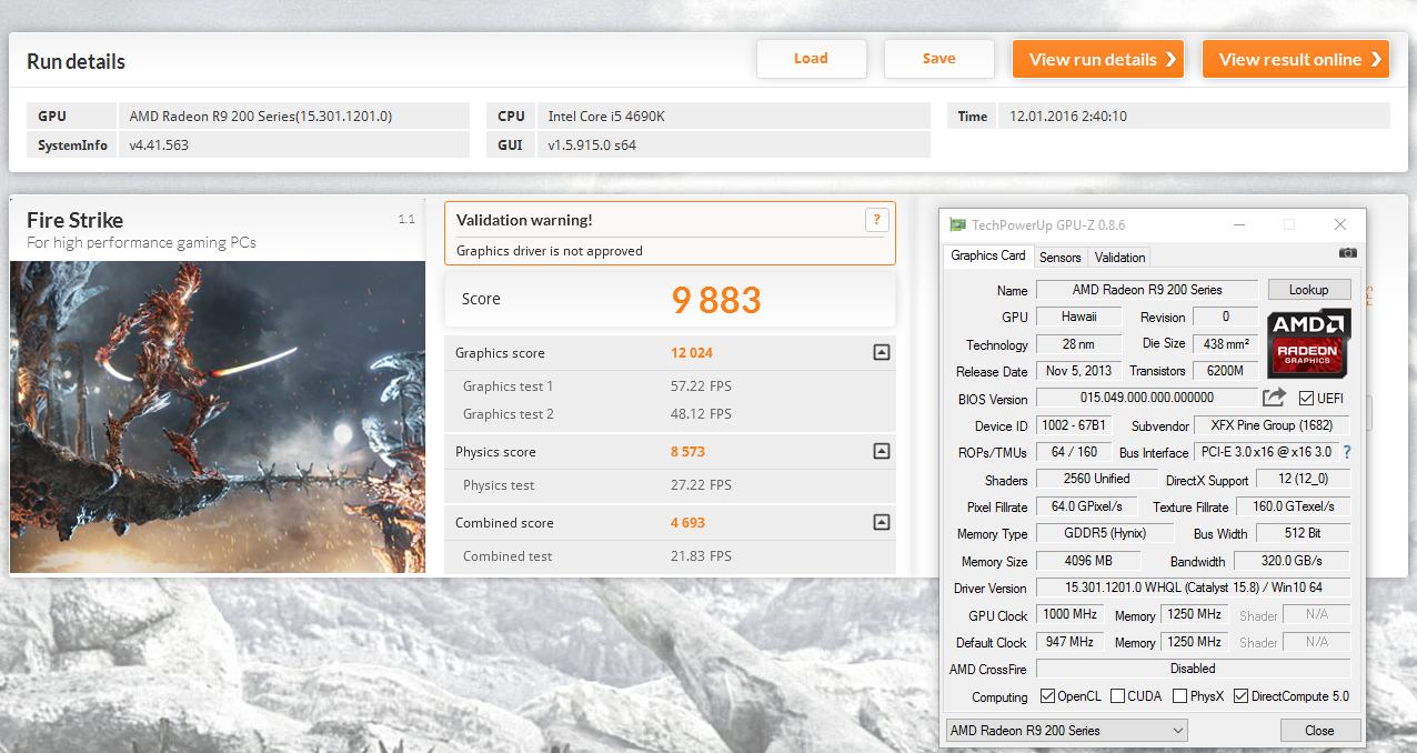 Кто-нибудь может прислать фотографию результатов R9 290 с частотами 1000-1250 бенчмарка 3DMark 2013 Fire Strike обычный. Хочу знать Graphics Score и сравнивать со своей R9 390. Мне важно) Есть результаты 290Х - ее не надо.