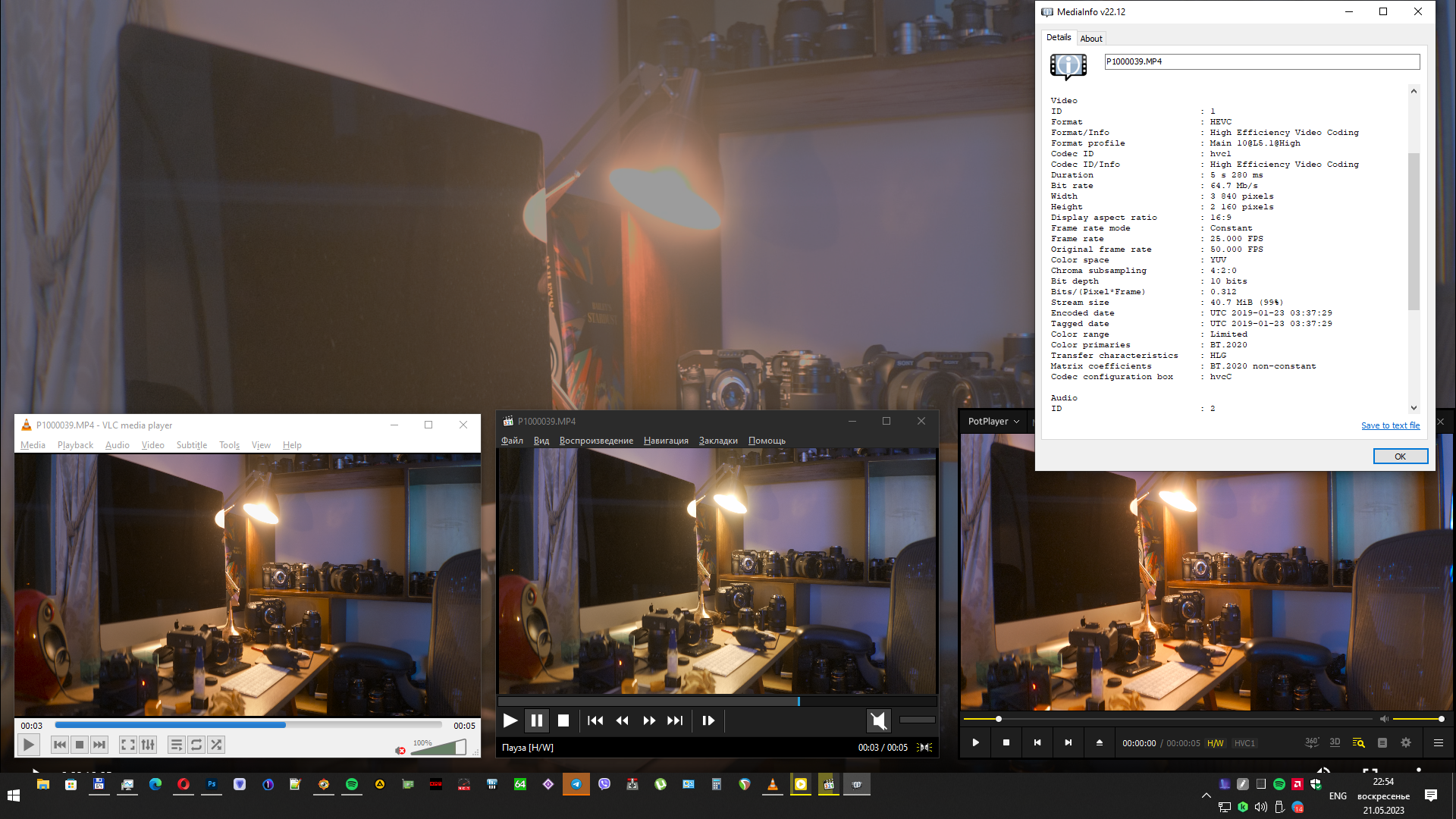 Заморочился, скачал файл на 10бит, открыл в трех разных плеерах и в нагрузку еще в опере...сделал и скриншот и фото, чтобы было понятно что в системе, а что видно глазами