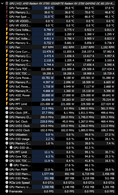 Был именно от обычной гиговской 5700 (лимиты 1850мгц и +20%), но более старый, если смотреть на доступные настройки в MPT - разницы нет. Либо в новой ревизии как-то по-другому реализованы (и соответственно прописаны в биосе) датчики, либо драйвер косячил с тем биосом (ибо драйвер между этими перепрошивками не менялся). Помимо этих вариантов не знаю, чем еще можно объяснить, что общее потребление в одинаковой настройке на 1850/870мв в одной и той же игре (киберпанк) стало 130 вместо 200.