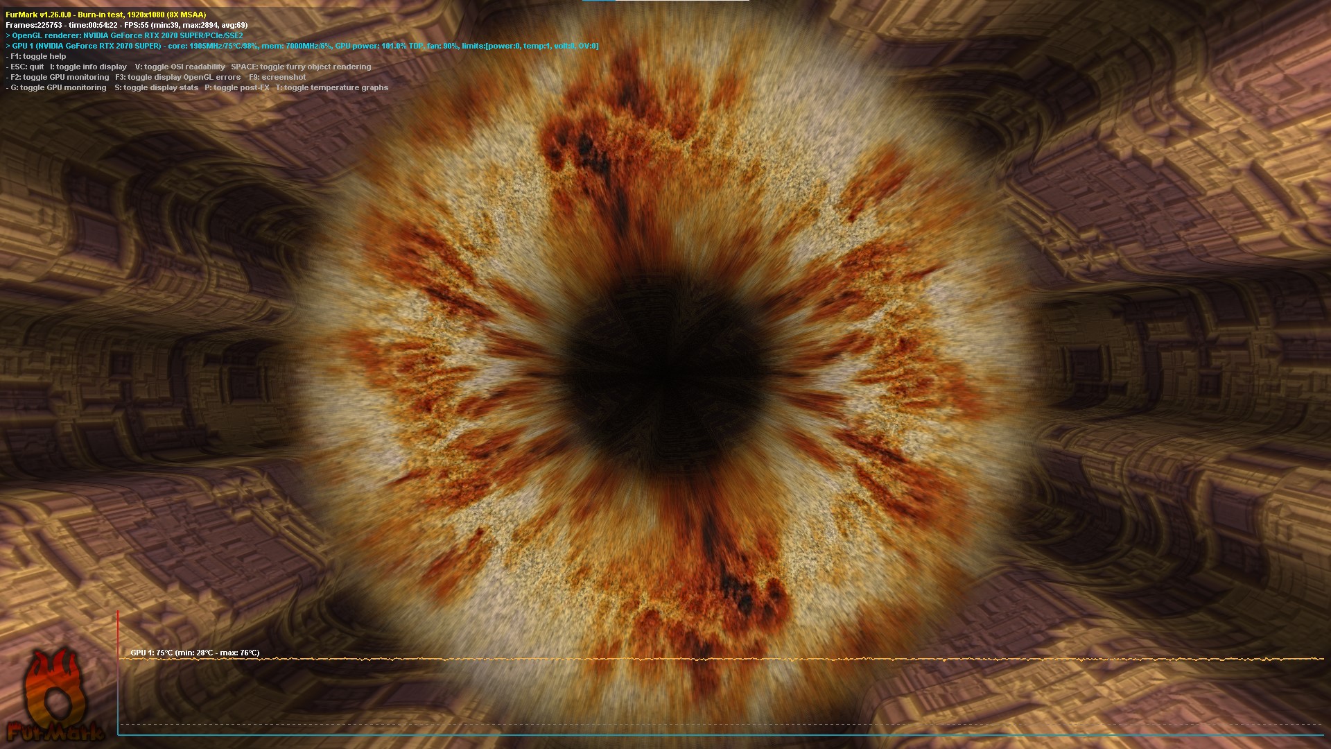 Приобрел я видеокарту на авито - Gigabyte 2070 Super Windforce oc 3x 8g rev 1.0, карточка от сентября 2019, внешне все ок, продавец вроде благонадежный, сказал что карту пора бы уже обслужить, работала она у него в хорошей нагрузке - в 4к на 43 дюймах. Так вот, почистил от пыли, продул спринцовкой, воткнул проверять. Счастью моему не было предела, пока я не обновил HWiNFO и CPU-Z и обнаружил новый сенсор "Hot Spot". Под нагрузкой в FurMark FullHD видеокарта - 75 градусов / самая горячая точка - 105 градусов/ температура памяти - 85, вертушки на полную. В играх ~ 71/96/83 (под Cyberpunk 2077 на Ultra FullHD так же греется, как и в FurMark). В спокойном режиме 30/41/41. В некоторых нагрузках свистят дроссели, но меня это не особо удивило, моя старая 1060 так всю дорогу работала. Корпус вполне вентилируемый, спереди стоит две вертушки по 3200 оборотов. Под нагрузкой вроде как все прекрасно работает, фпс не просаживается