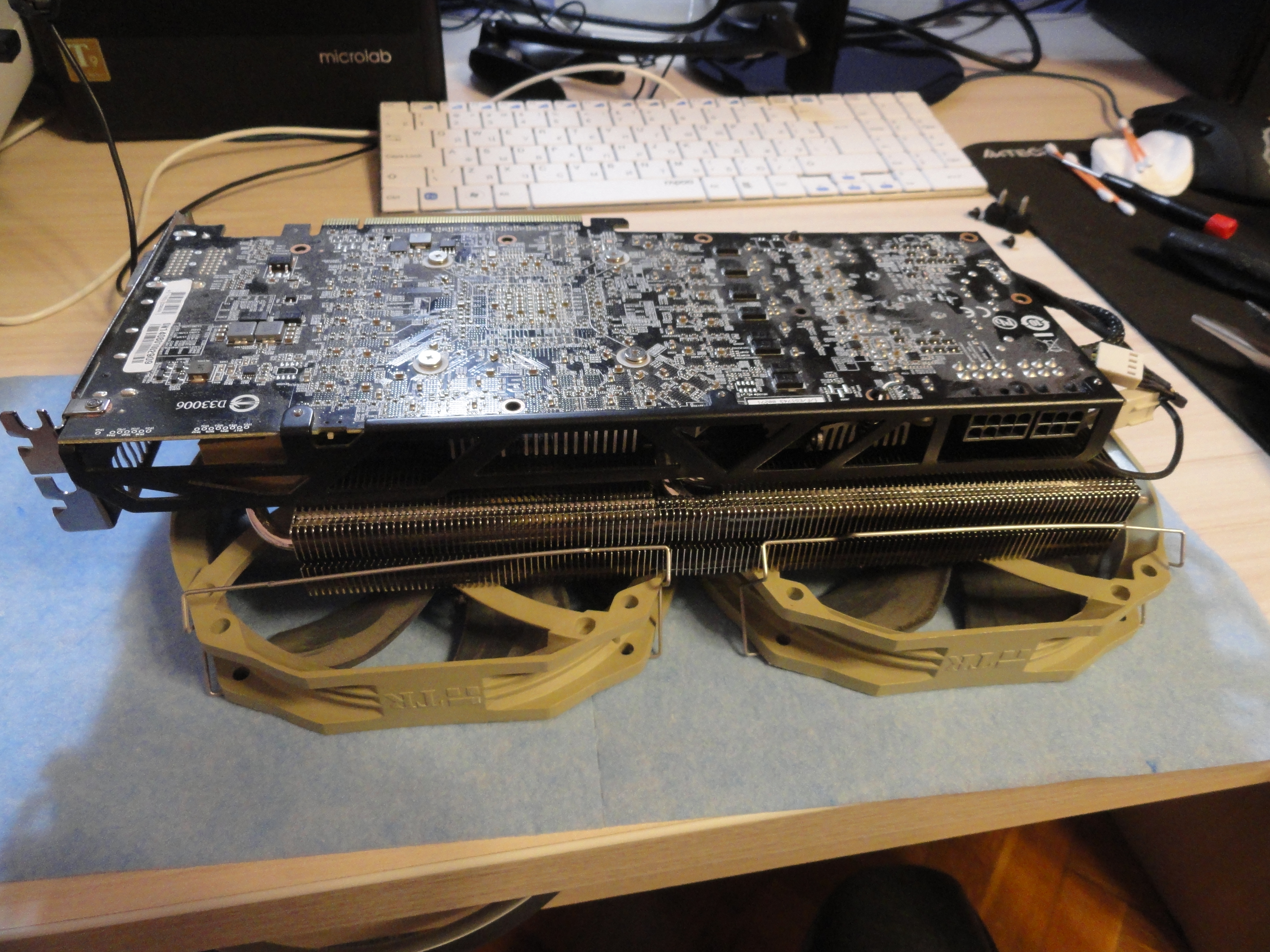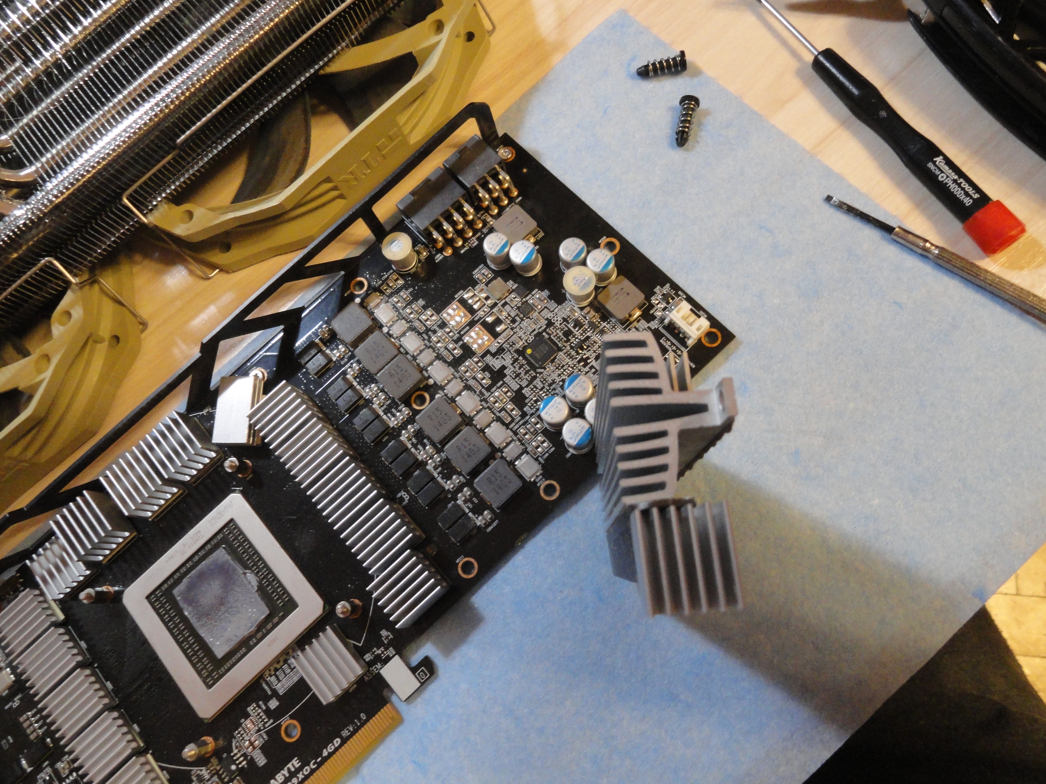 винты м3, обычные, вместо стандартных пластиковых клипс которые на фото видно. Сегодня всё разобрал, собрал по новой, пасту поменял на zm, подумал если вдруг до этого мне левую продали.. Теперь чип больше 78 не поднимает, но врм без изменений. Стоковое охлаждение в бублике сливает моментально, 70 градусов на врм там быть не может, там в играх