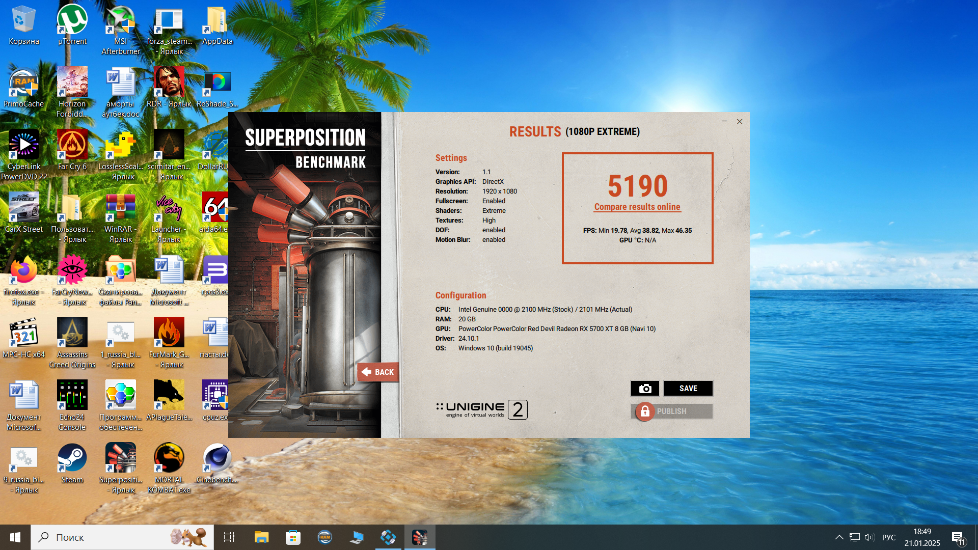 Добавил павер лимит +20%, потребление 220W, хот-спот 85, частоты чипа скачут 1800-1900 прогнал суперпозитион, сколько попугаев не дотягивает до стоковой 5700xt ? Или даже до обычной не дотягивает? Я просто не знаю на что ориентироваться