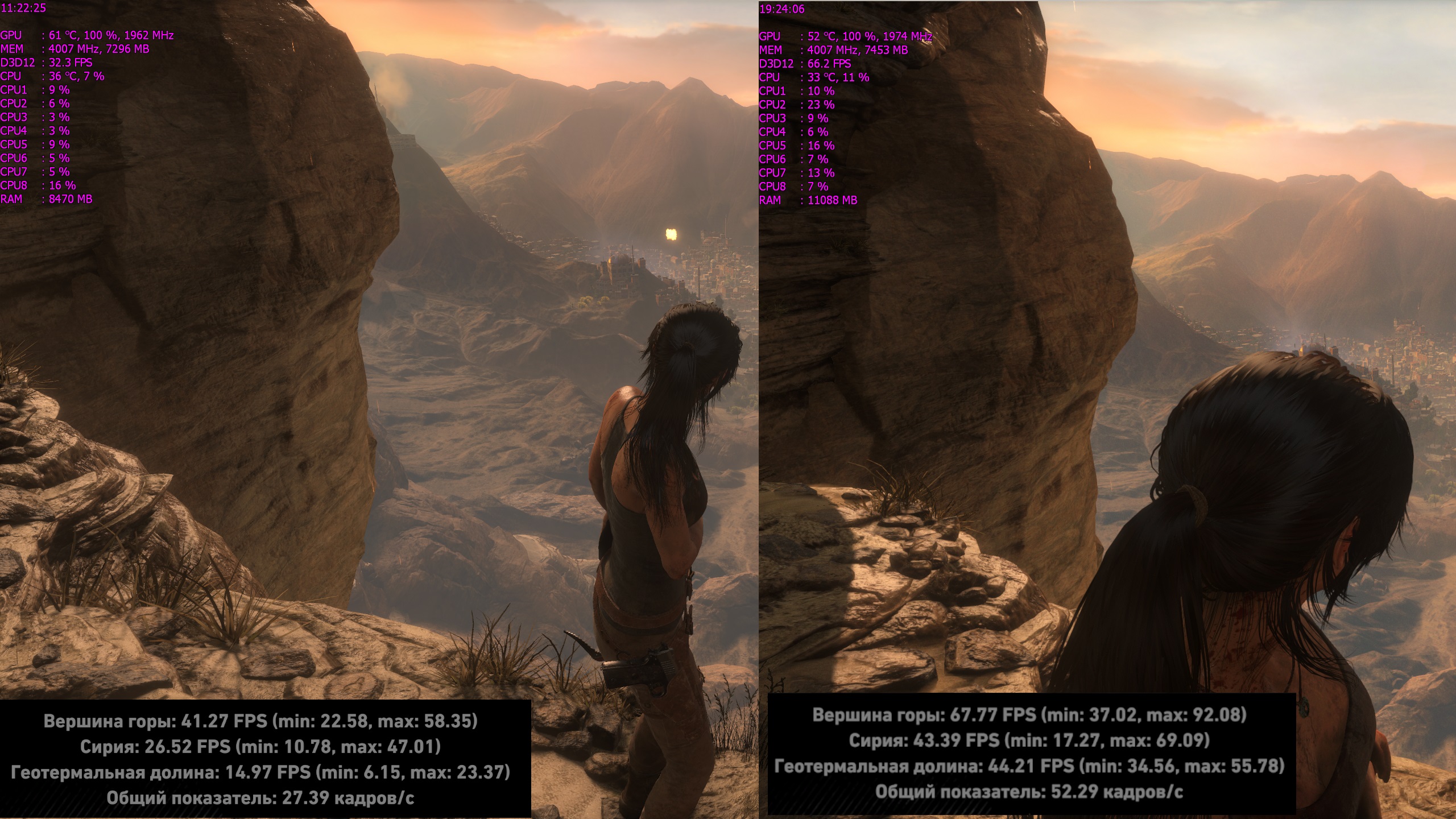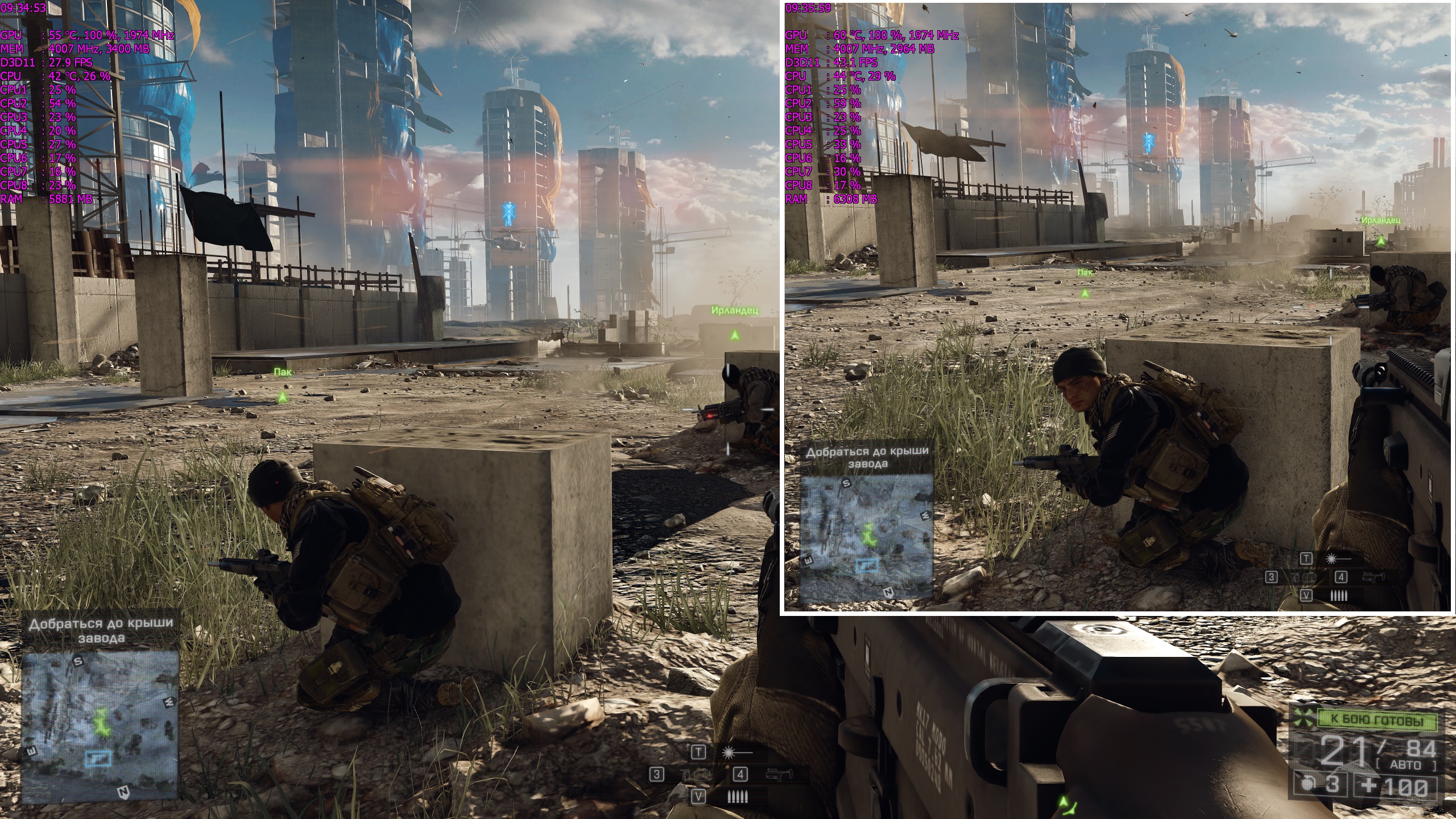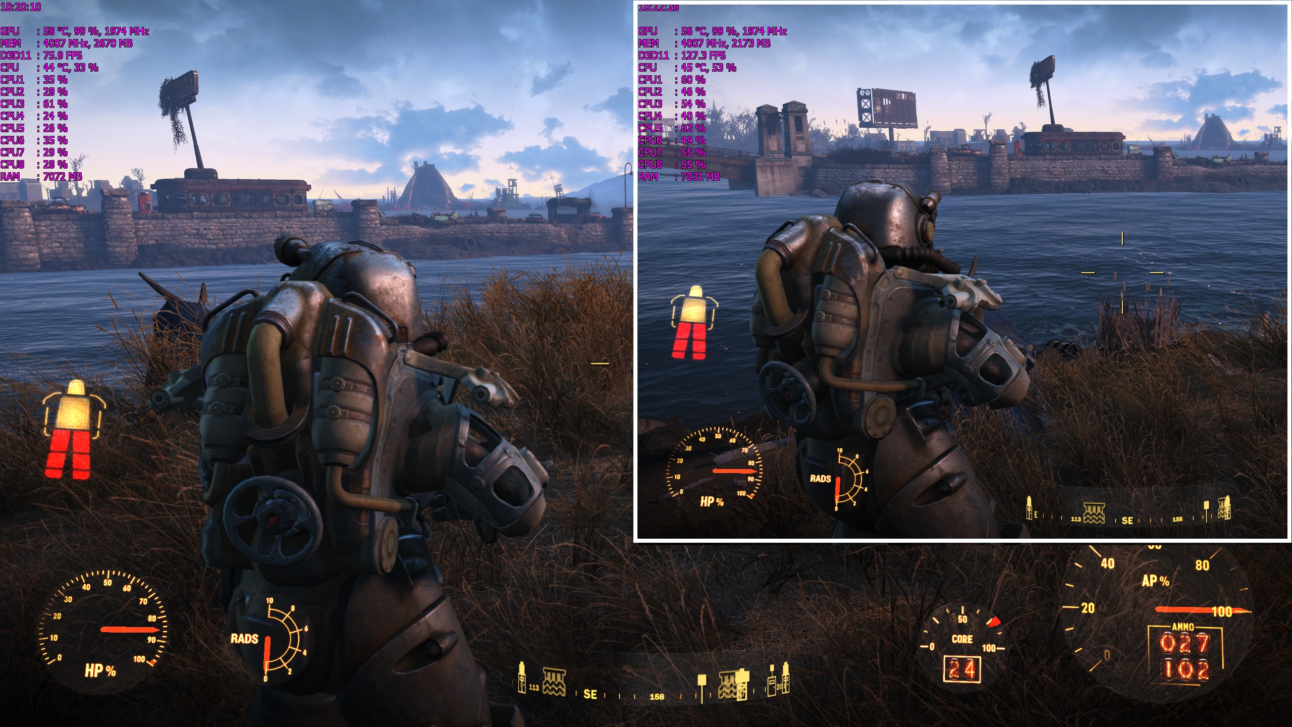 Если кто-то размышляет над сменой монитора с Full HD на 2K, или кто-то планирует апгрейдить ВК до 1070, возможно будет интересно что будет на выходе в реальных популярных играх. Процессор Core i7-6700K 4400MHz. Память 3200 MHz. ВК - EVGA GTX 1070 FTW Для того чтобы был достигнут "край возможностей", я выкрутил все настройки графики в играх до потолка (волосы, тени, тесселяции и т.д. т.е подкрутил на максимум все что возможно было подкрутить). Понятно что FPS в каких-то сценах больше, в каких-то проседает, но в среднем картина примерно такая как на скриншотах. 2К-слева FHD-справа