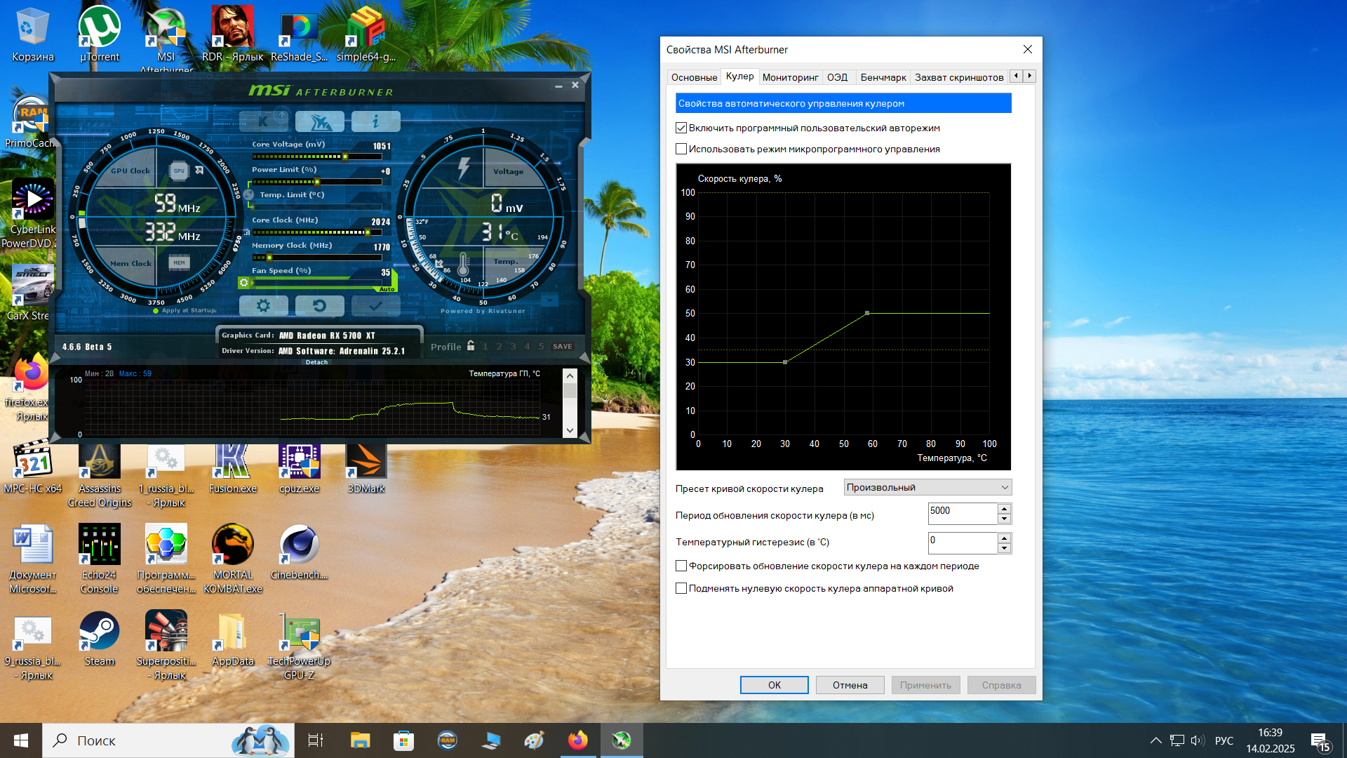 Подскажите у кого стоит последний мси афтебернер,бета 5 который. У вас нормально работает управление вентилятором? У меня только на 35% почему то крутятся