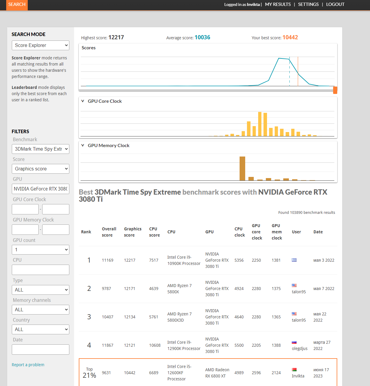Ну вот даже мой результат, который явно похуже рез-та vol2008, показывает себя неплохо, если брать владельцев 3080ti. Рад как слон таким результатом, особенно если вспомнить, что еще года 3 назад я боялся двинуть любой из слайдеров в asus tweak ибо боялся скоропостижной смерти своей asus strix gtx 970.