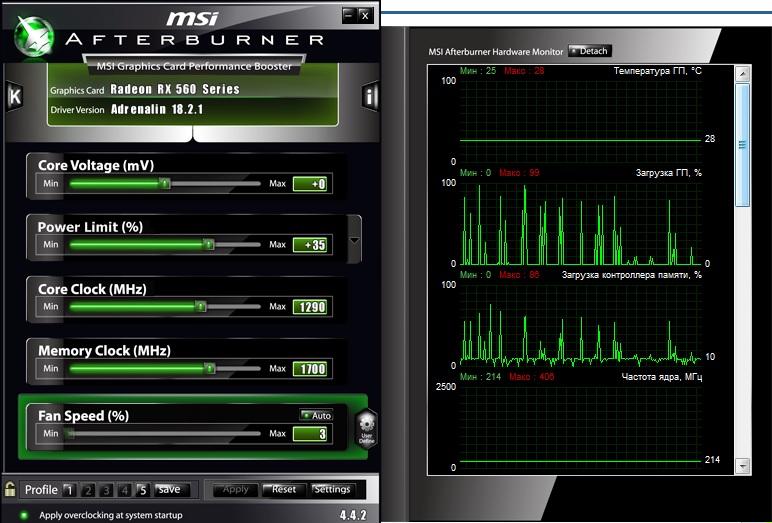 Q: По мониторингу напряжение на GPU немного отличается от установленного. A: Реально напряжение выставляется кратно 6.25 и округляется в большую сторону. То есть, если Вы выставили 1137, то реально у Вас будет 1137.5, а если выставили 1138, то уже реально будет 1143.75 мВ.