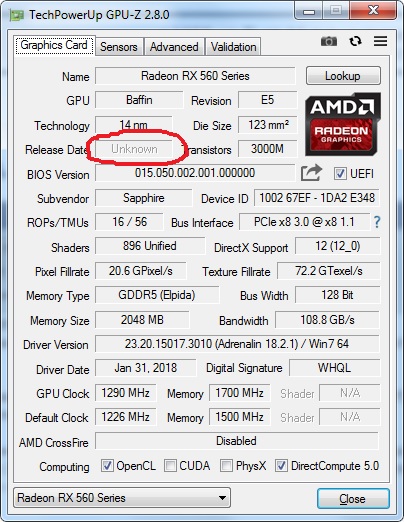 alexsash, поле "Release Date" в GPU-Z - это не дата выпуска BIOS, это официальная дата релиза GPU. Берется из внутренней базы GPU-Z. Unknown потому, что чип ревизии E5 еще не внесен в базу. TEST у маркировки чипов памяти тоже есть. По разгону памяти ясно, спасибо.