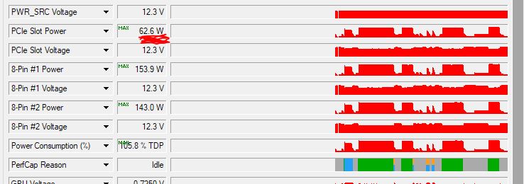 Один 8 пин дает карте 150Вт (на самом деле - может и больше), PCI-E слот - 75Вт. 150+150+75=375Вт, которые и предлагает BIOS на той карте, а потребление все равно не выходит за рамки 350Вт. 25вт запаса еще есть, но он не может быть утилизирован. Думаете, третий 8 пин позволит GPU выйти за эти рамки? Что-то я очень сильно в этом сомневаюсь, но я подожду и узнаю точно:)