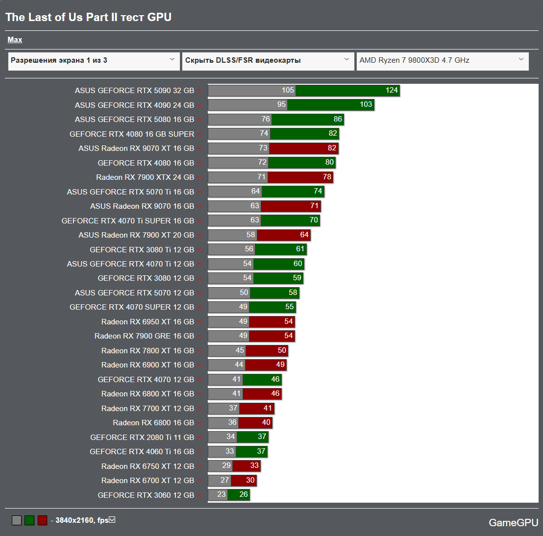 Так это TPU. Когда покажешь их тестовый отрезок, чтобы можно было перепроверить, тогда поговорим. Я бегал часа 3 в TLOU p2 на своей 4090, у меня всегда фпс был выше, чем на их графике (и это с моим относительно слабым ЦП) Вот так вышло у тех, кто не стыдится выложить тестовый отрезок