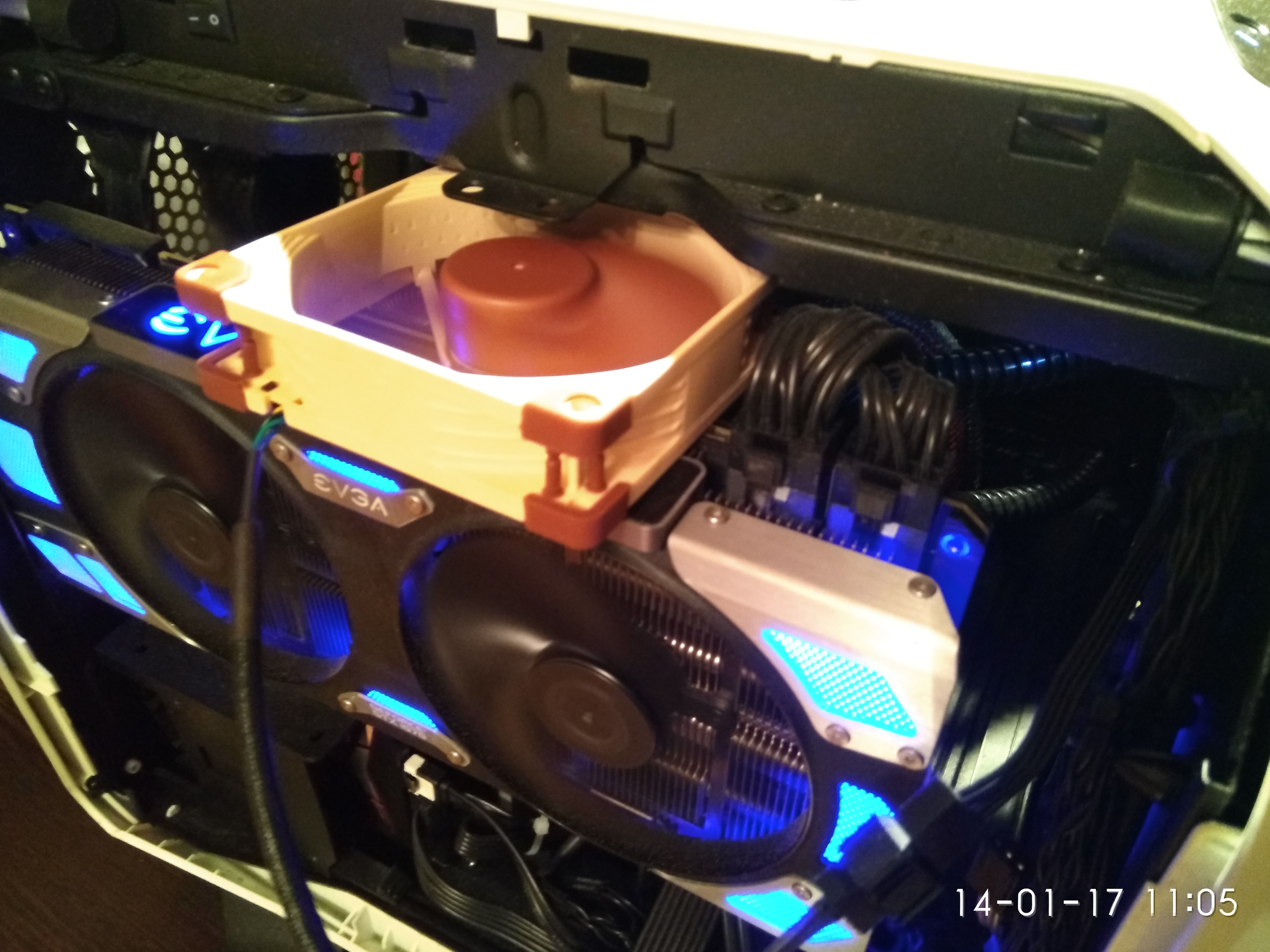 Да нет, температуры в ГП вообще до 50 не доходят. Просто дома лежит Ноктуавский карлсон 90мм от кулера. Давно думал куда его приладить, и тут вот она - тема Возможно идея с доп охлаждением силовой зоны при плохом обдуве может и другим пользователям пригодится, не только ЕВГАшникам.