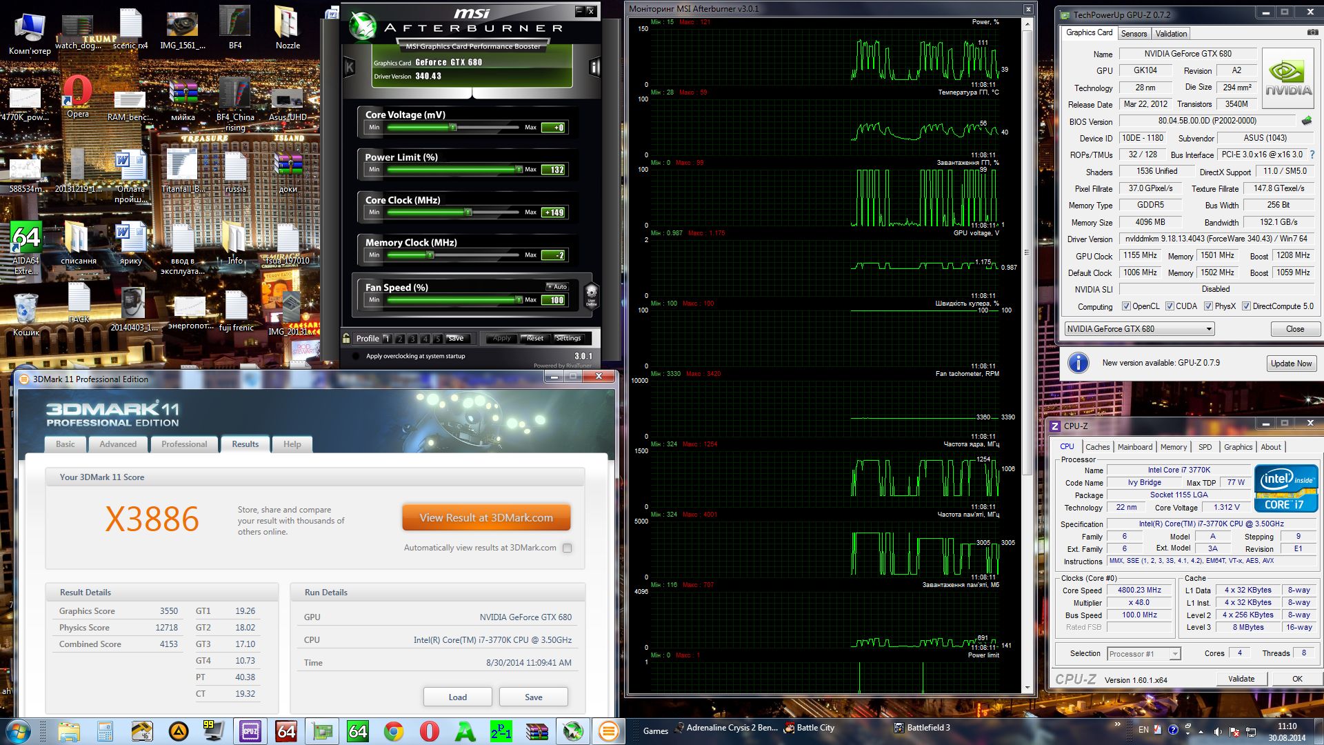 Спрашивали тут недавно на сколько гонится Кеплер, у одного форумчанина получилось до 1500МГц разогнать 680-ую, как говориться, сбылась мечта. Ниже фото его ПК. #77#77#77 ЗЫ У ASUS GTX680-DC2O-2GD5 (и простой и топ версии) охлад посерьезней чем у 670-ой и 770-ой от ASUSа разумеется, у последних он одинаков. Так что если все-таки брать сегодня 770-ую, то наверно MSI молнию и желательно со скидкой, поскольку 780-ая по цене в спину дышит. Про себя скажу 1200 по ядру и 7000 на память мне за глаза, пока что.