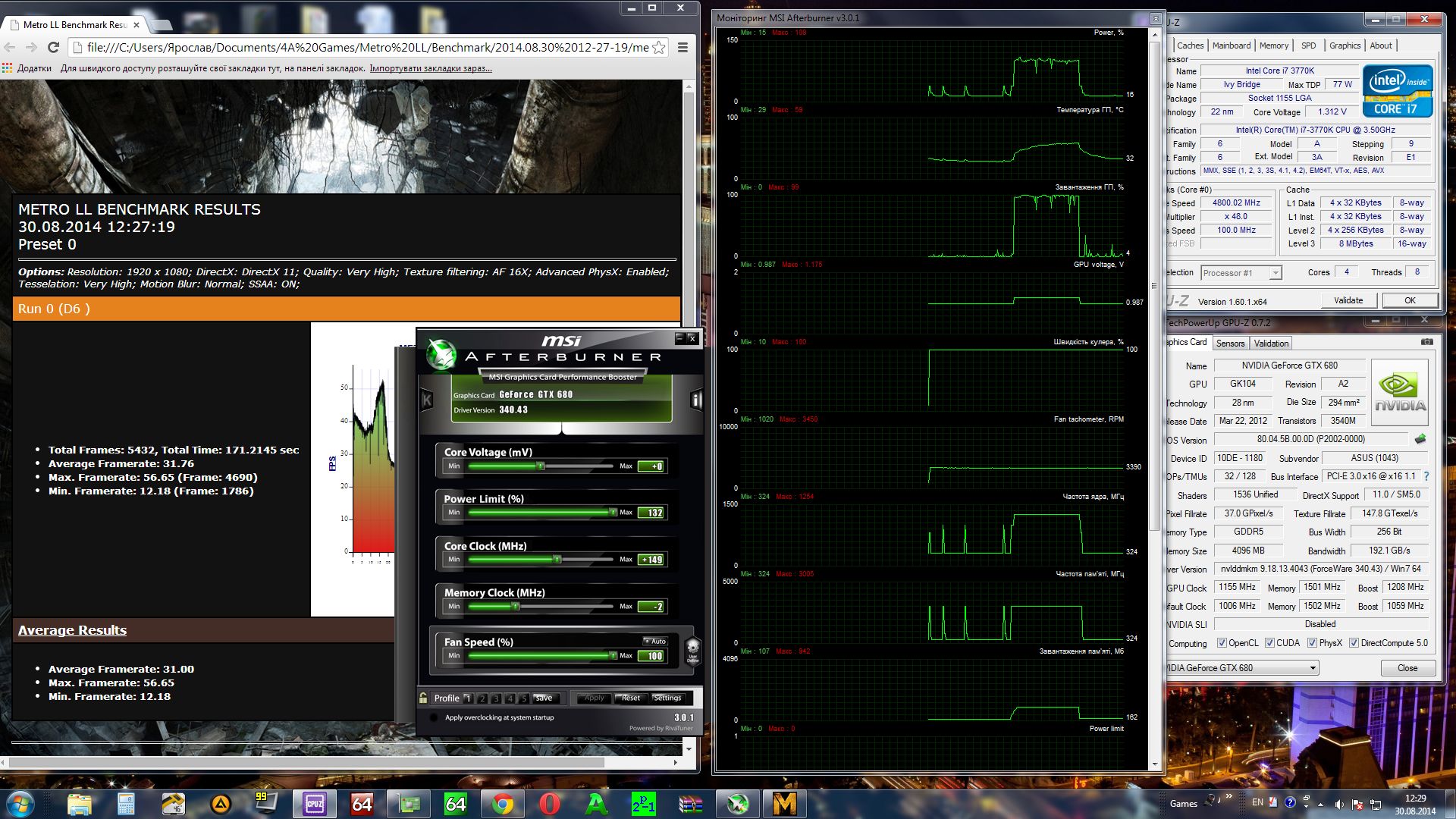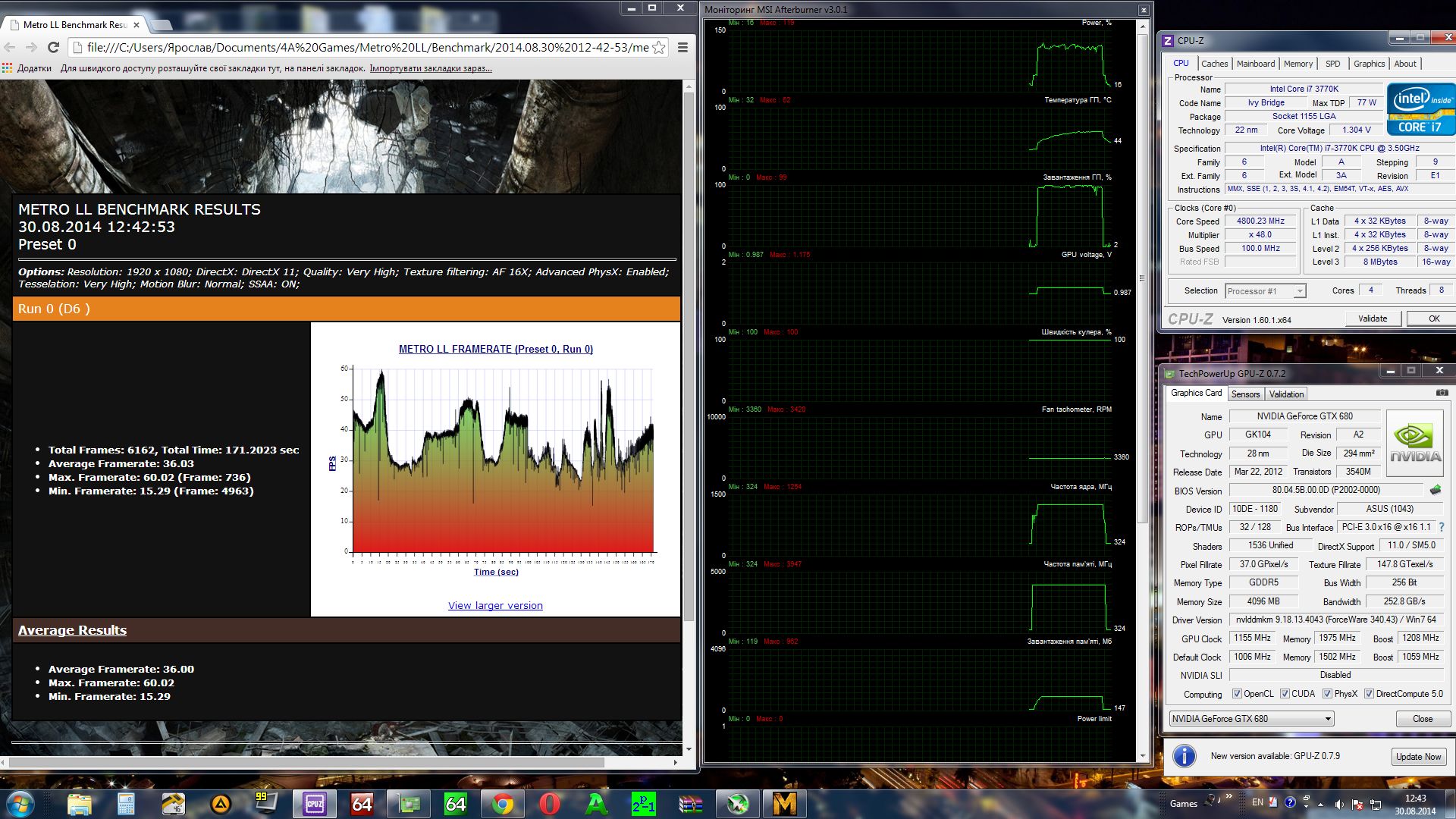 Провел замеры. В тех играх, где нету встроенного бенча - загружался сейв со статической сценой (имхо результат достаточно показателен). Проц работал на 4800, чип 680 на 1254МГц. Три варианта частот памяти: 6000, 7000 и 8000Мгц. Прим.: Бенч Metro Last Light не смог пройти на 8000, пришлось опустить до 7900 .