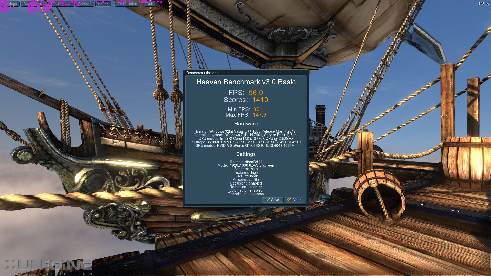 Кто просил Heaven (снова пришлось понизить до 7900): Та-же картина - от 6 до 7ГГц прирост есть, выше - гораздо менее заметен. 1254/6010 - 52 fps 1254/7012 - 56 fps 1254/7900 - 58,4 fps